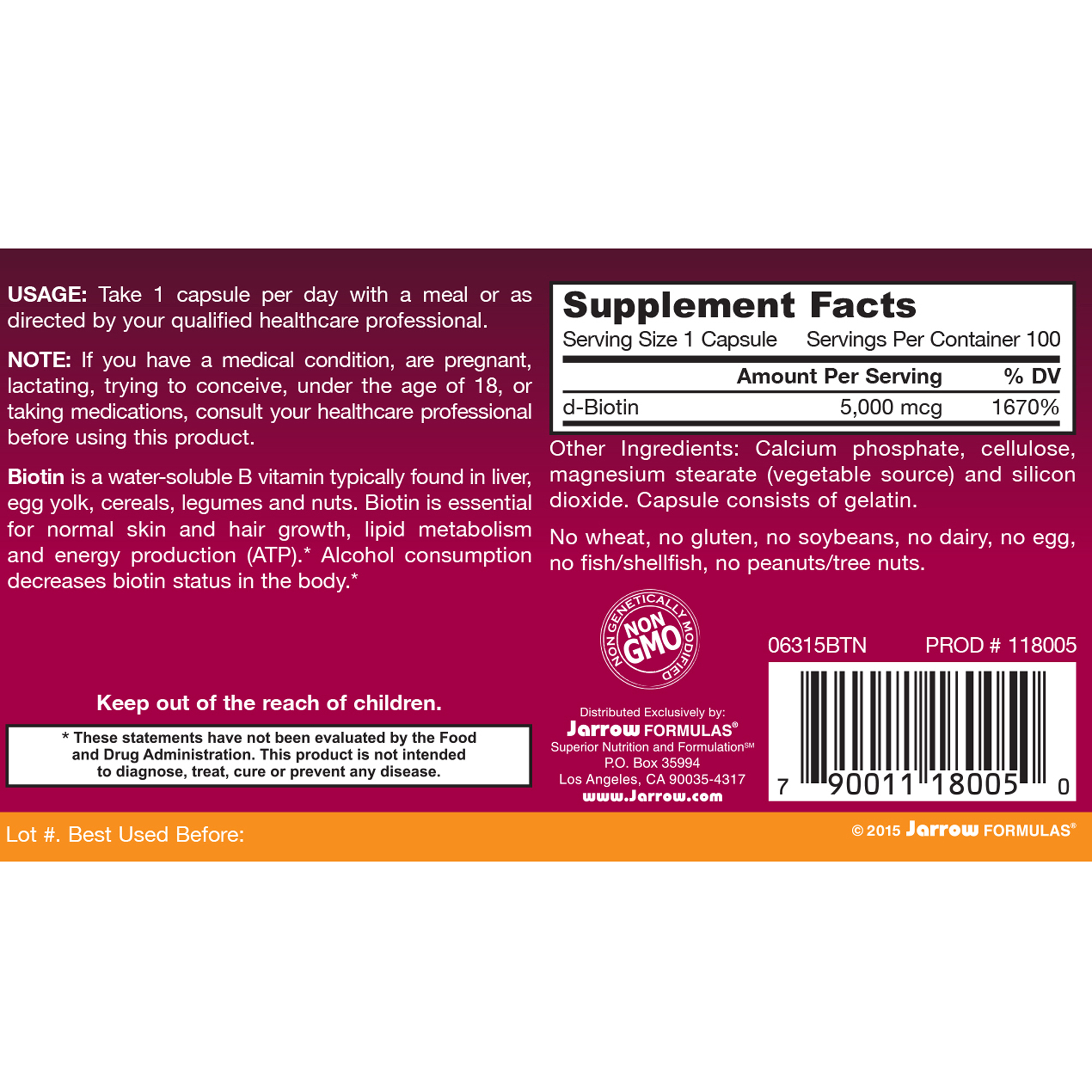 Biotin is a water-soluble B vitamin typically found in liver, egg yolk, cereals, legumes, and nuts. Biotin is essential for normal skin and hair growth, lipid metabolism and energy production (ATP).* Alcohol consumption decreases biotin status in the body.*