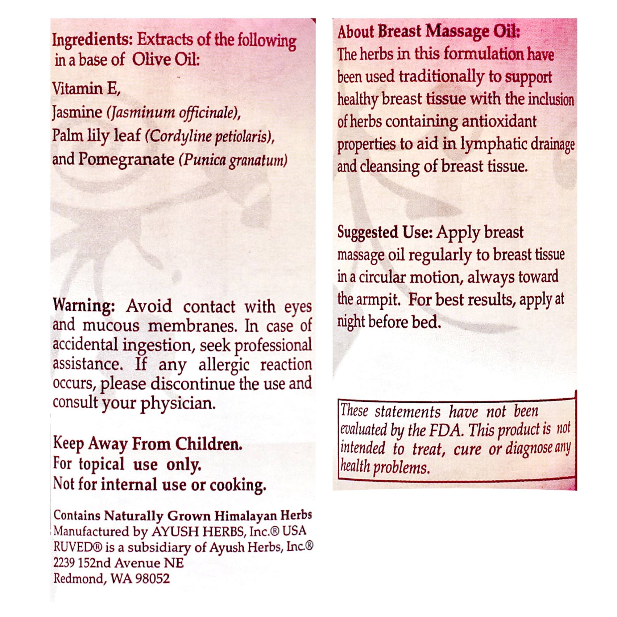 Breast Massage Oil 6oz is available by Ayush Herbs.