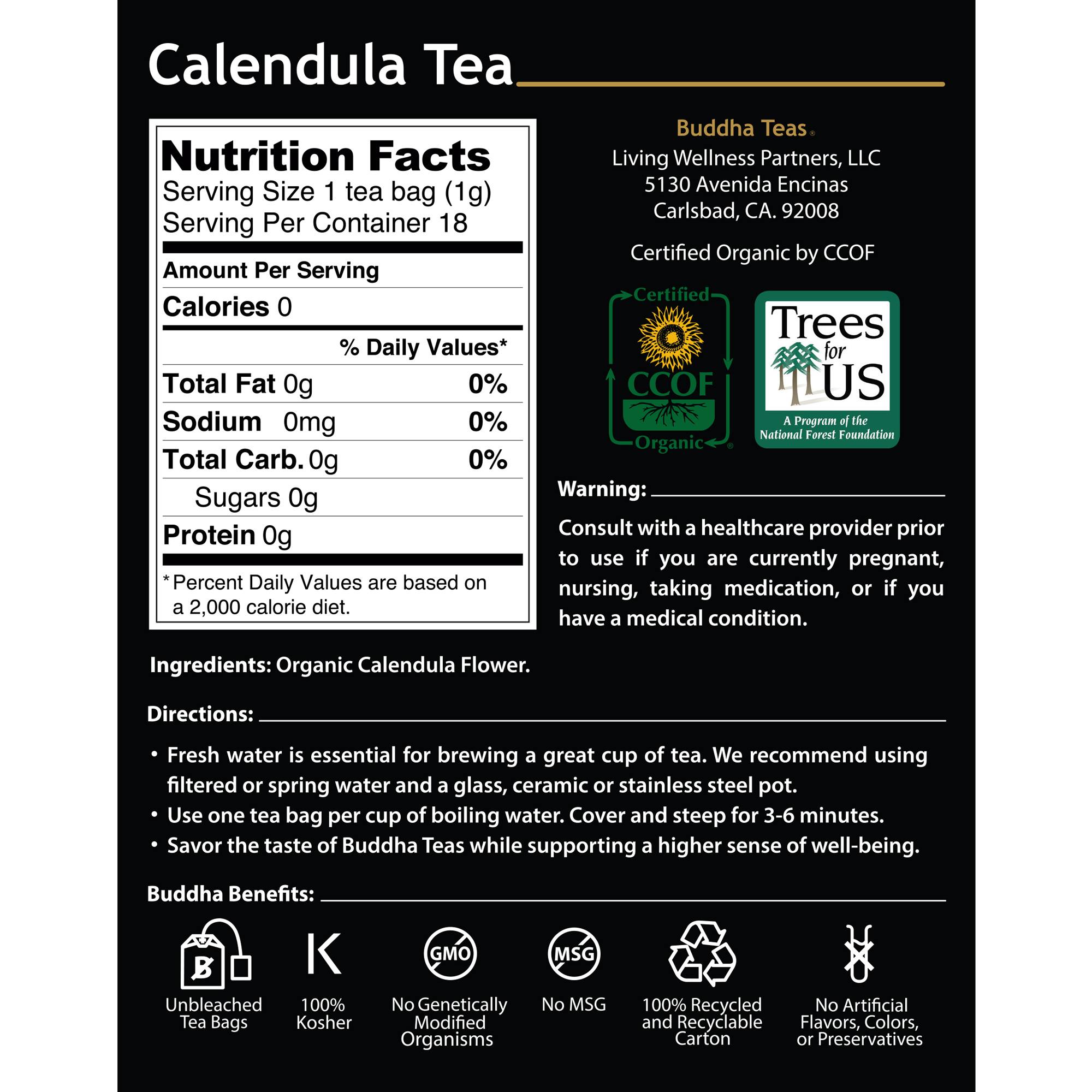 Calendula, also known as marigold, is a popular flower with yellow-gold blossoms seen throughout Europe and Asia. Its petals are edible and are used to make a fragrant herbal tea.