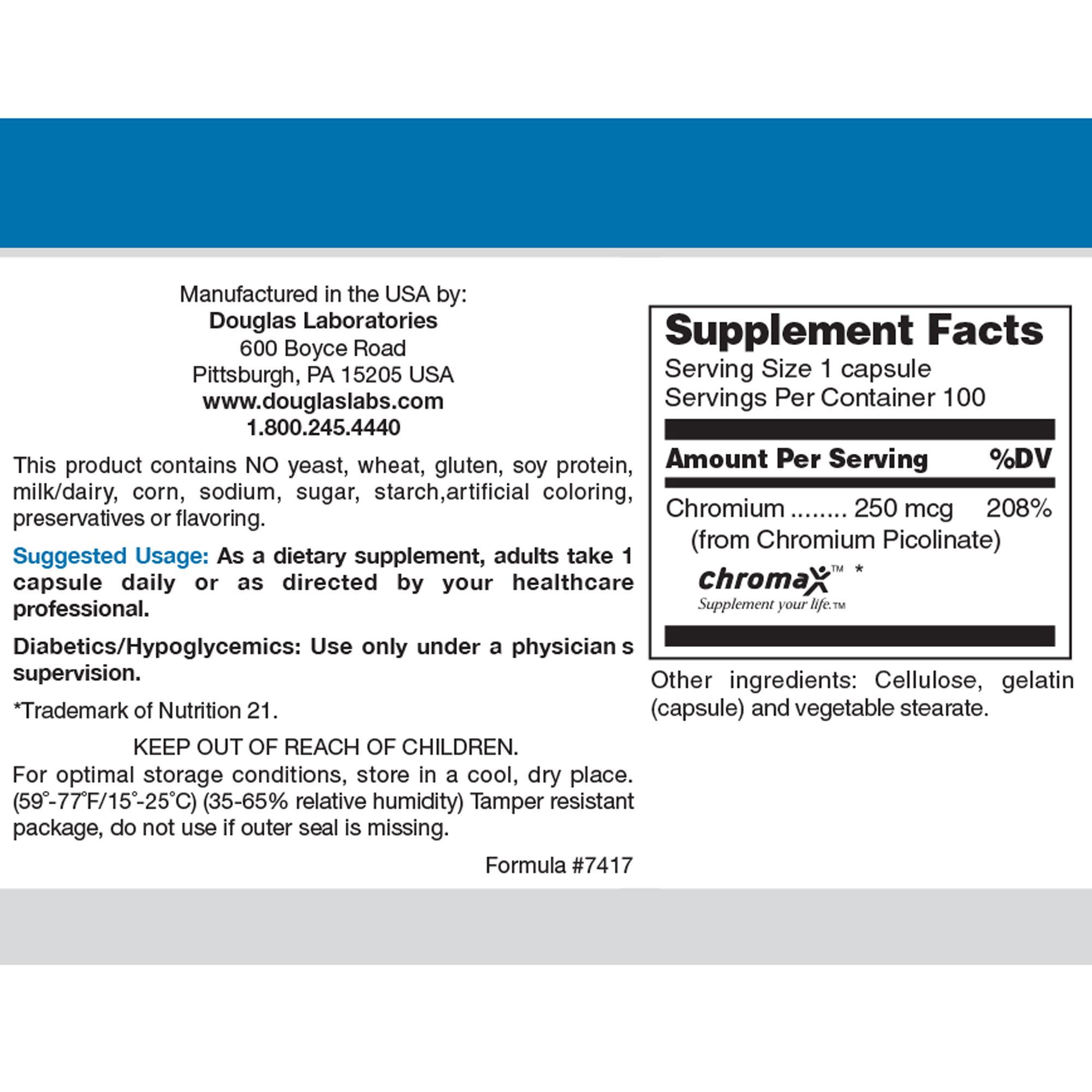 Chromium Picolinate 250 mcg. is a trace element supplement that contains chromium bound to picolinic acid, a highly biologically active form of this mineral.