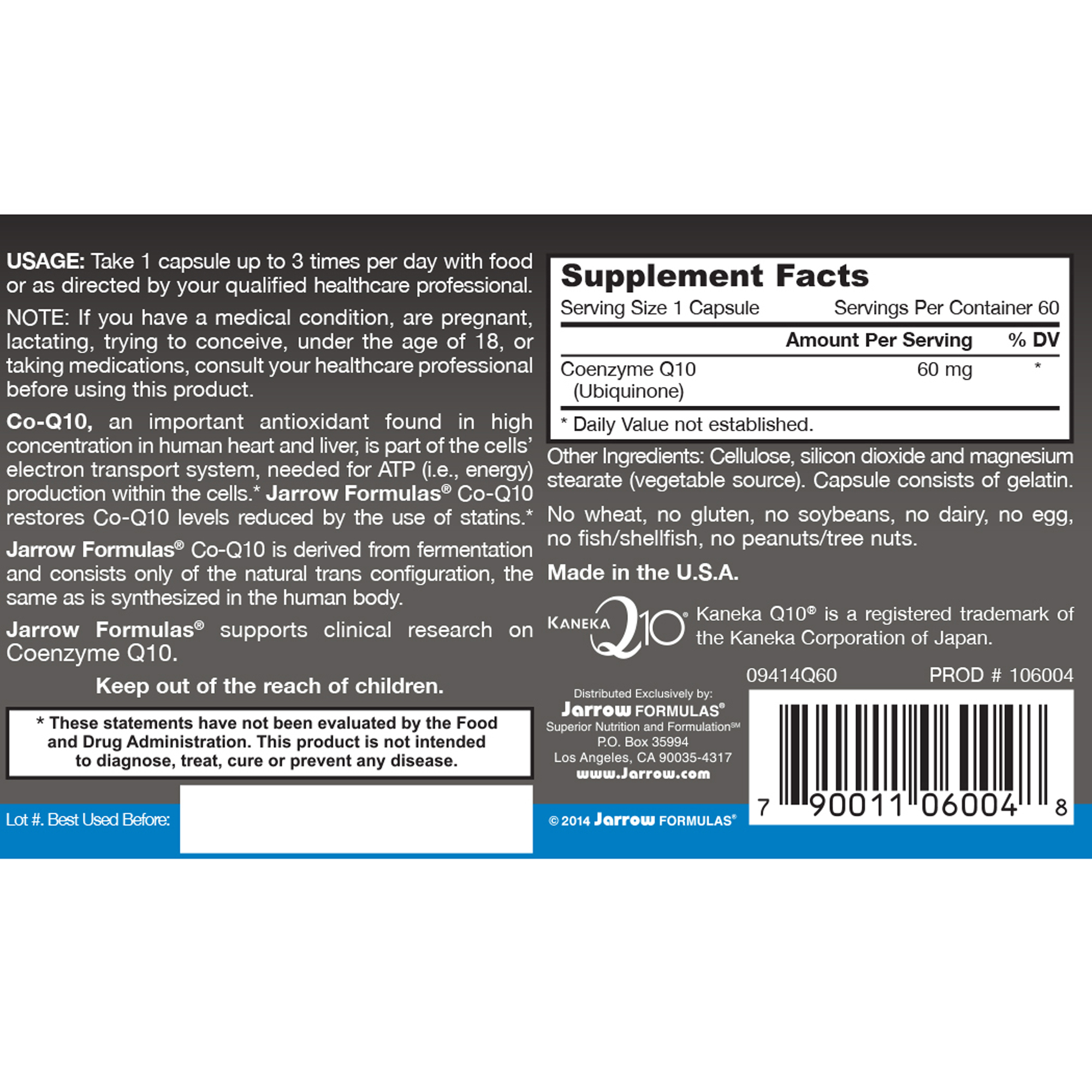 Jarrow Formulas® Co-Q10 is derived from fermentation and consists only of the natural trans configuration, the same as is synthesized in the human body.