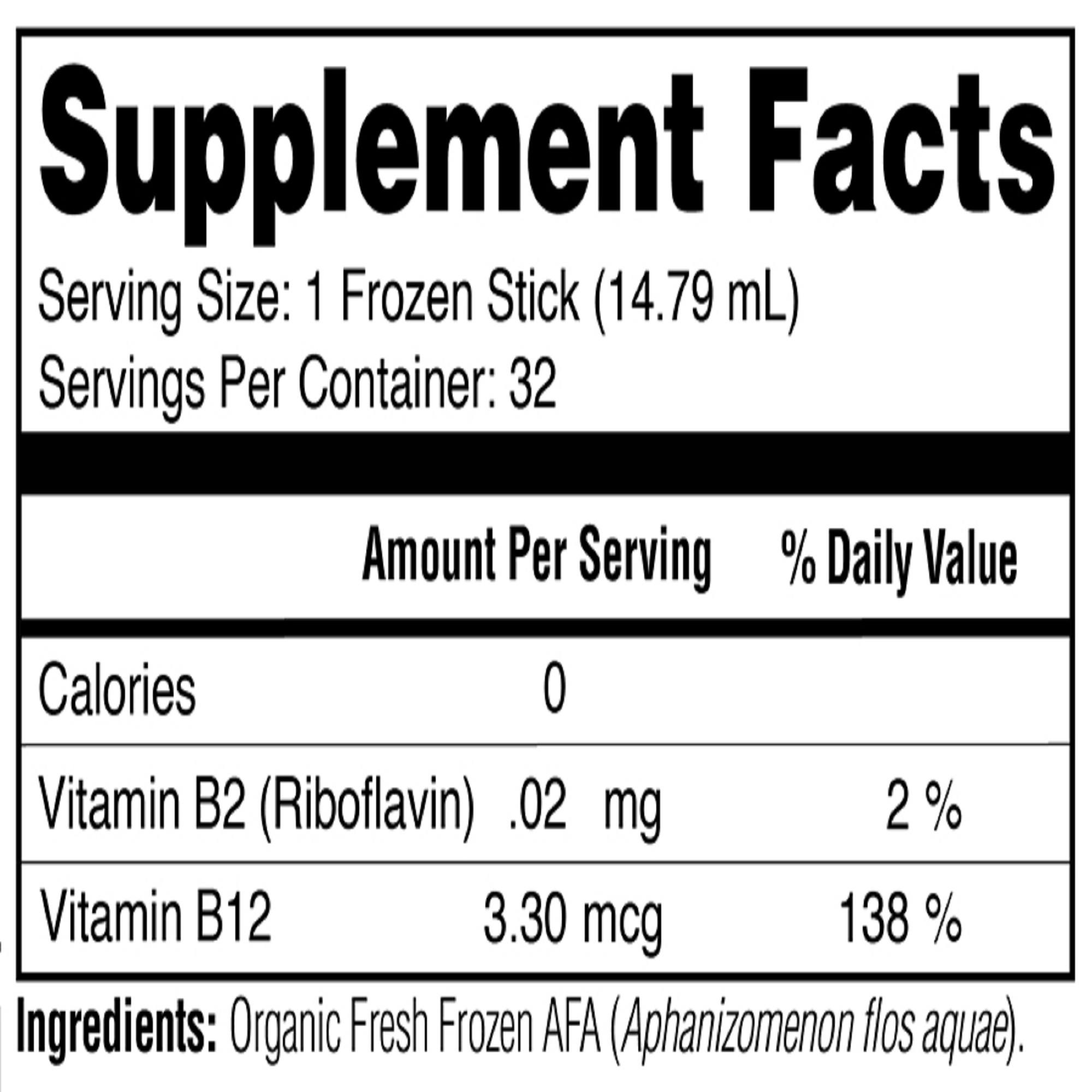 100% Aphanizomenon flos-aquae, a Nutrient Dense Aqua Botanical (blue-green algae).