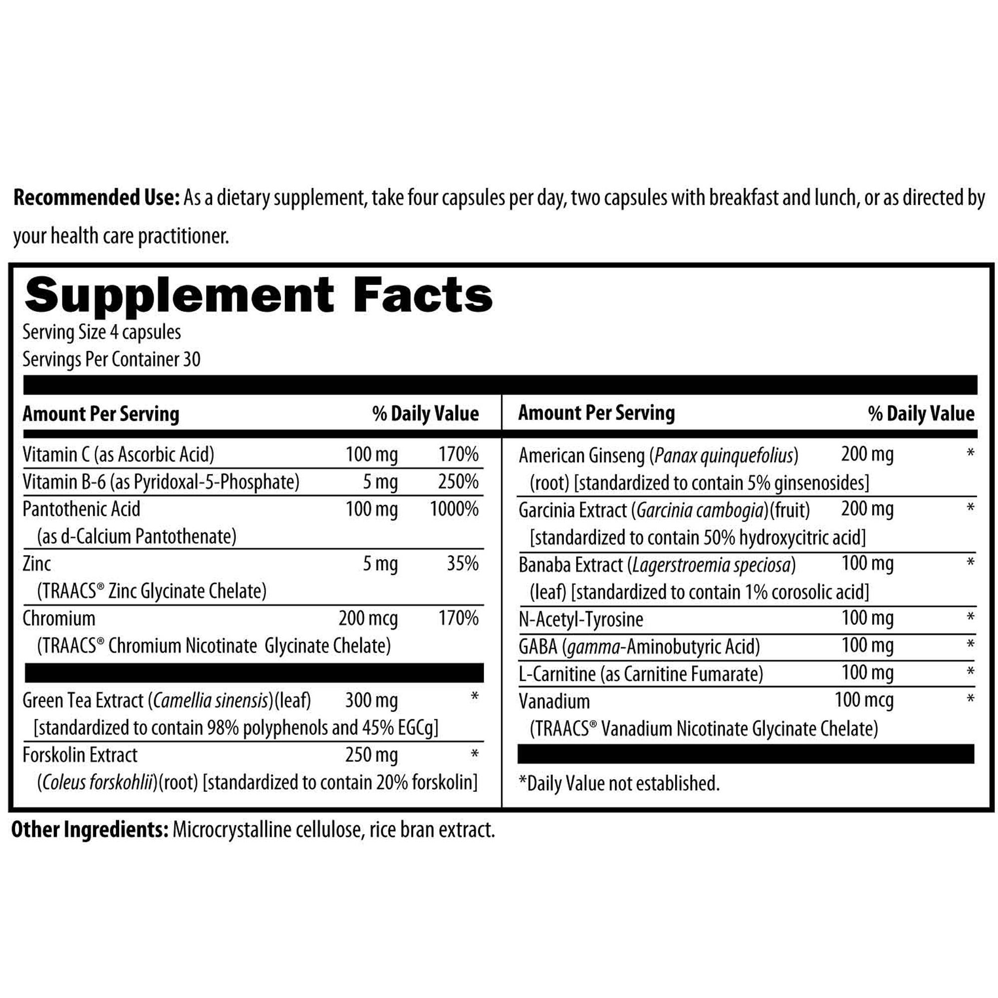 Other Ingredients: Cellulose (capsule), microcrystalline cellulose, vegetable stearate, silicon dioxide.
