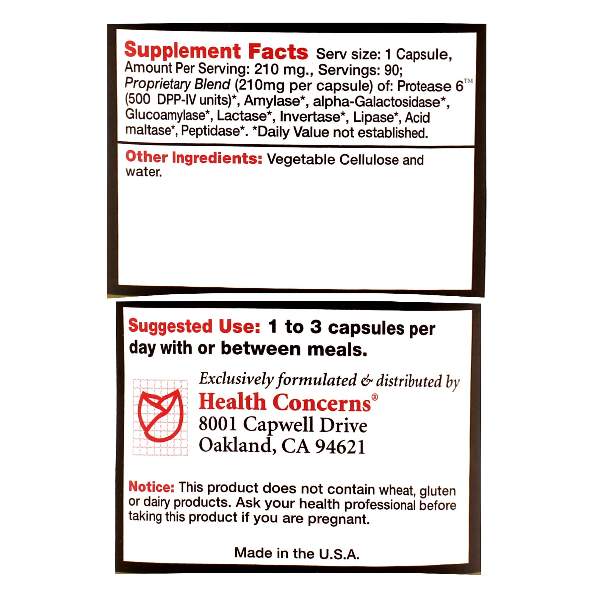Suggested Use: 1 to 3 capsules per day with or between meals.