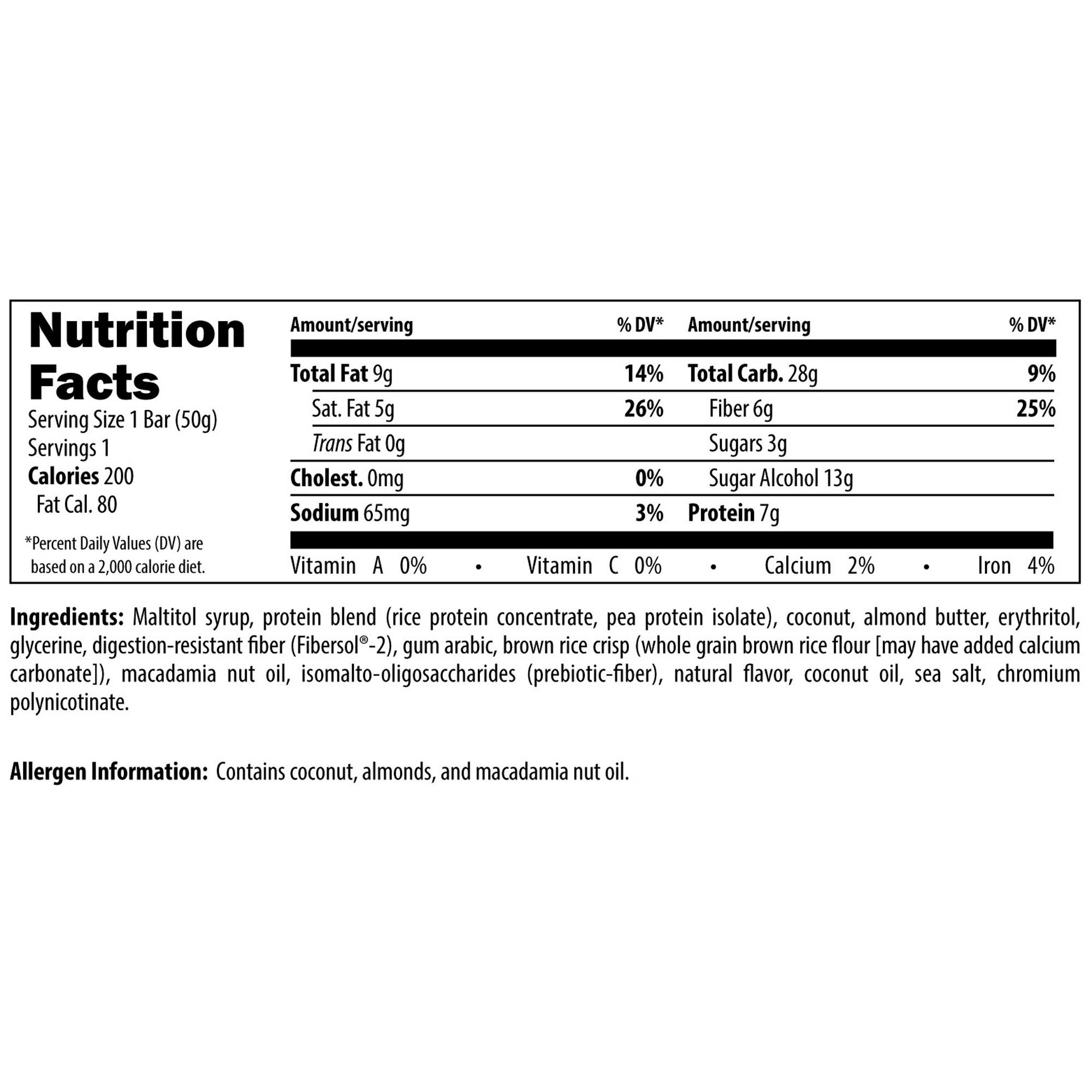 EssentiaBarTM DF Coconut/Almond is a crave control bar to help curb carbohydate cravings. This bar is dairy-free with a protein base from rice protein concentrate and pea protein isolate and healthy fats from almond butter and coconut oil.