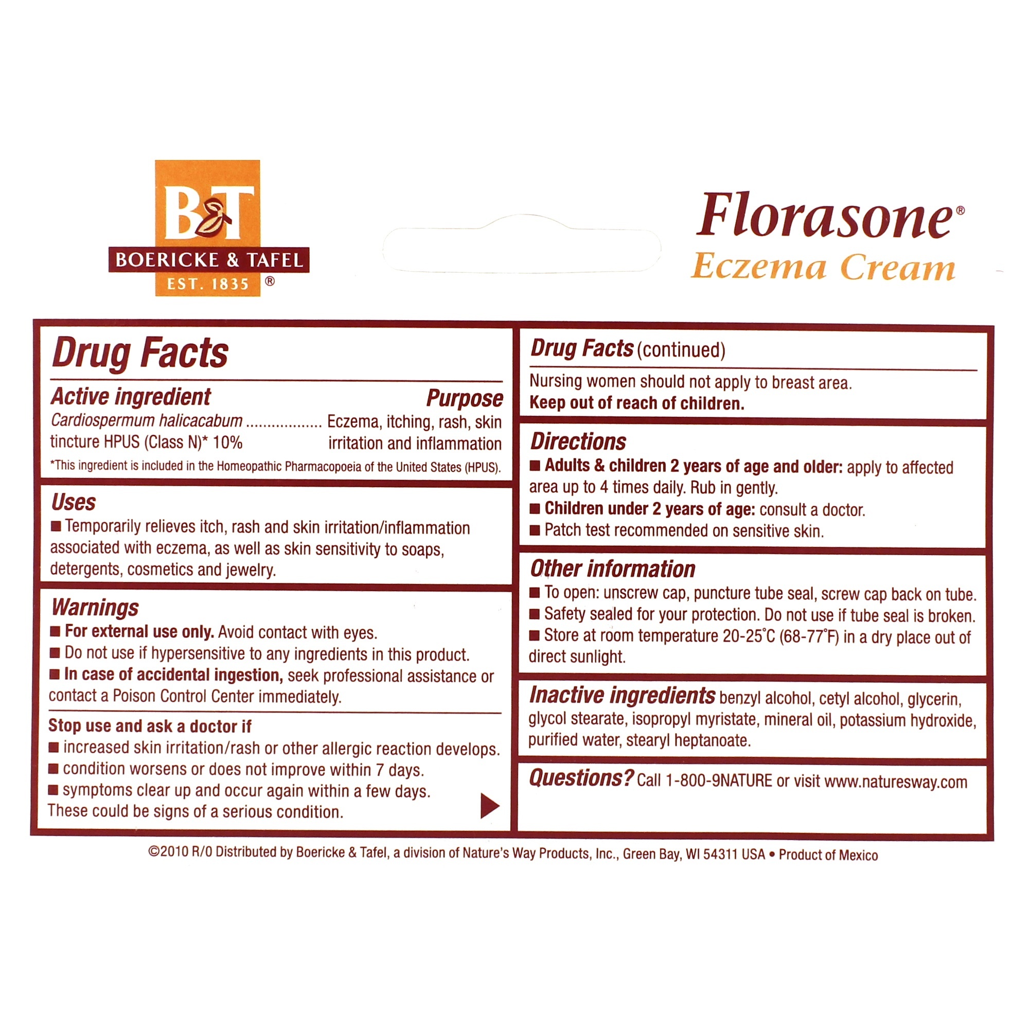 For years, skin specialists and family doctors in Europe have recommended the use of Florasone® Cardiospermum Cream as a natural alternative to cortisone for the itching, redness and rashes that accompany eczema. Florasone® Cardiospermum Cream absorbs quickly into the skin without the side effects common to steroidal cortisone. It contains no animal products, and leaves no greasy residue.