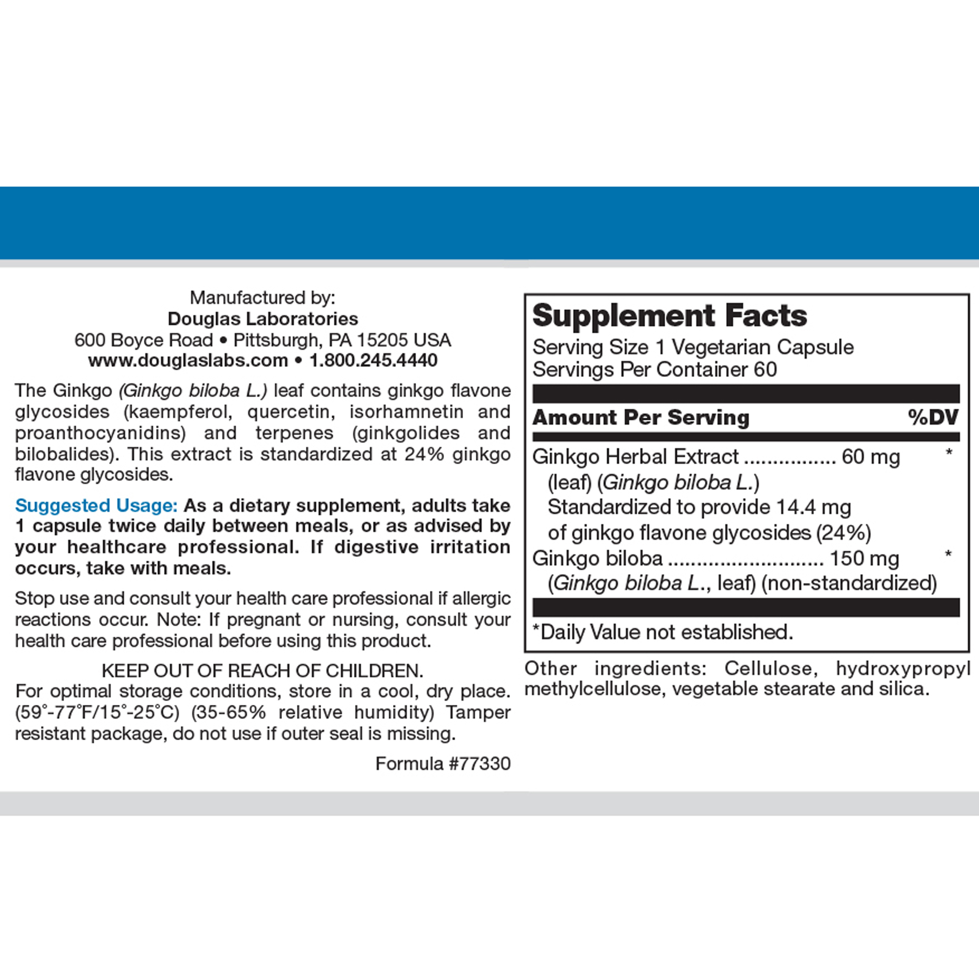 Ginkgo Biloba Max-V, provided by Douglas Laboratories, contains 60 mg of the herb Ginkgo biloba, in a vegetarian capsule. The active ingredients, ginkgo flavone glycosides, can help protect the body’s structure and function against damage from free radicals, as well as helping to maintain healthy circulatory function and mental performance.