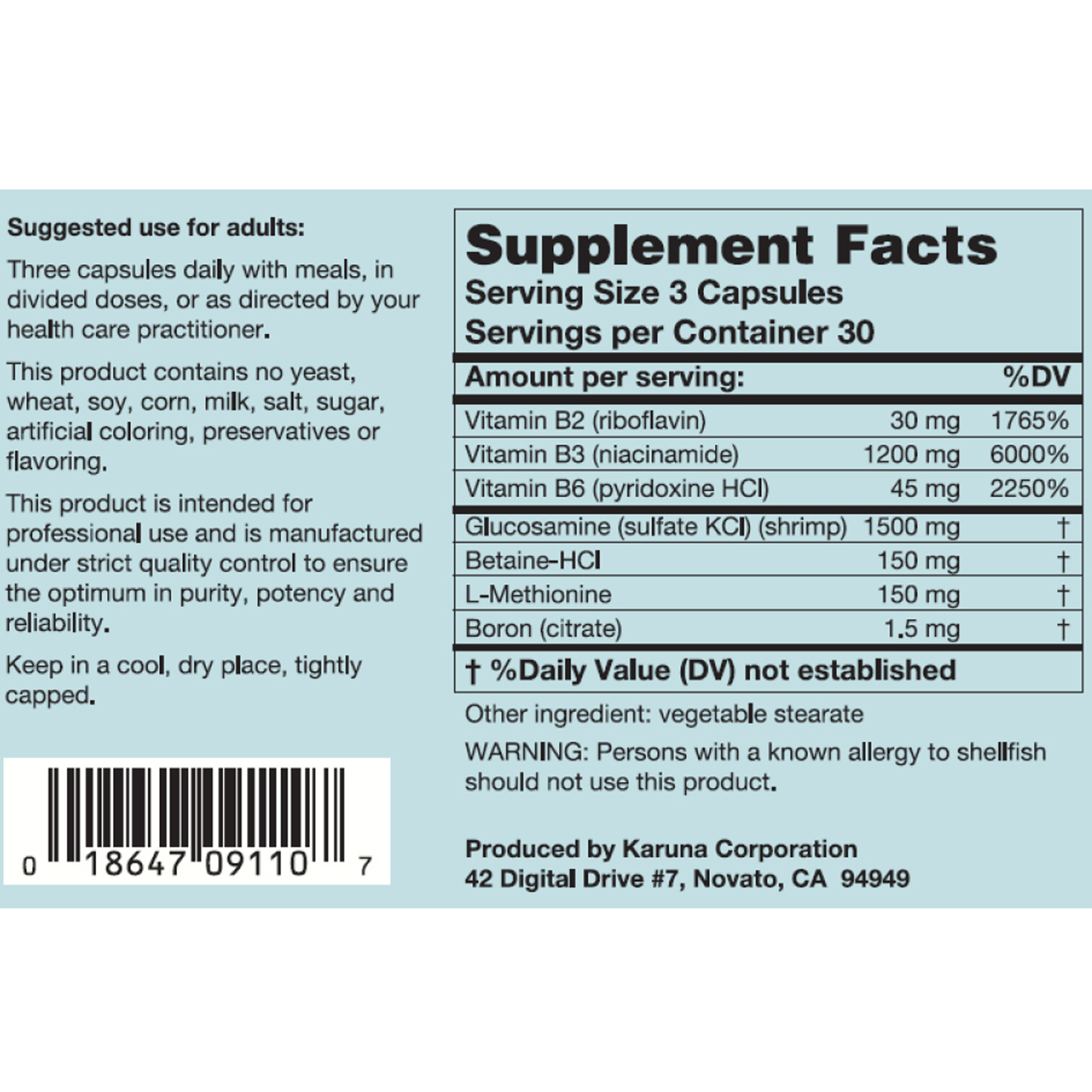 GlucoPlex contains an array of nutrients that participate in maintaining the integrity of healthy connective tissue. Glucosamine sulfate and niacinamide are both well-documented as effective promoters of healthy joint function. Potassium chloride (KCl) is a more expensive stabilizer of glucosamine sulfate, but is often preferred over sodium chloride (NaCl).