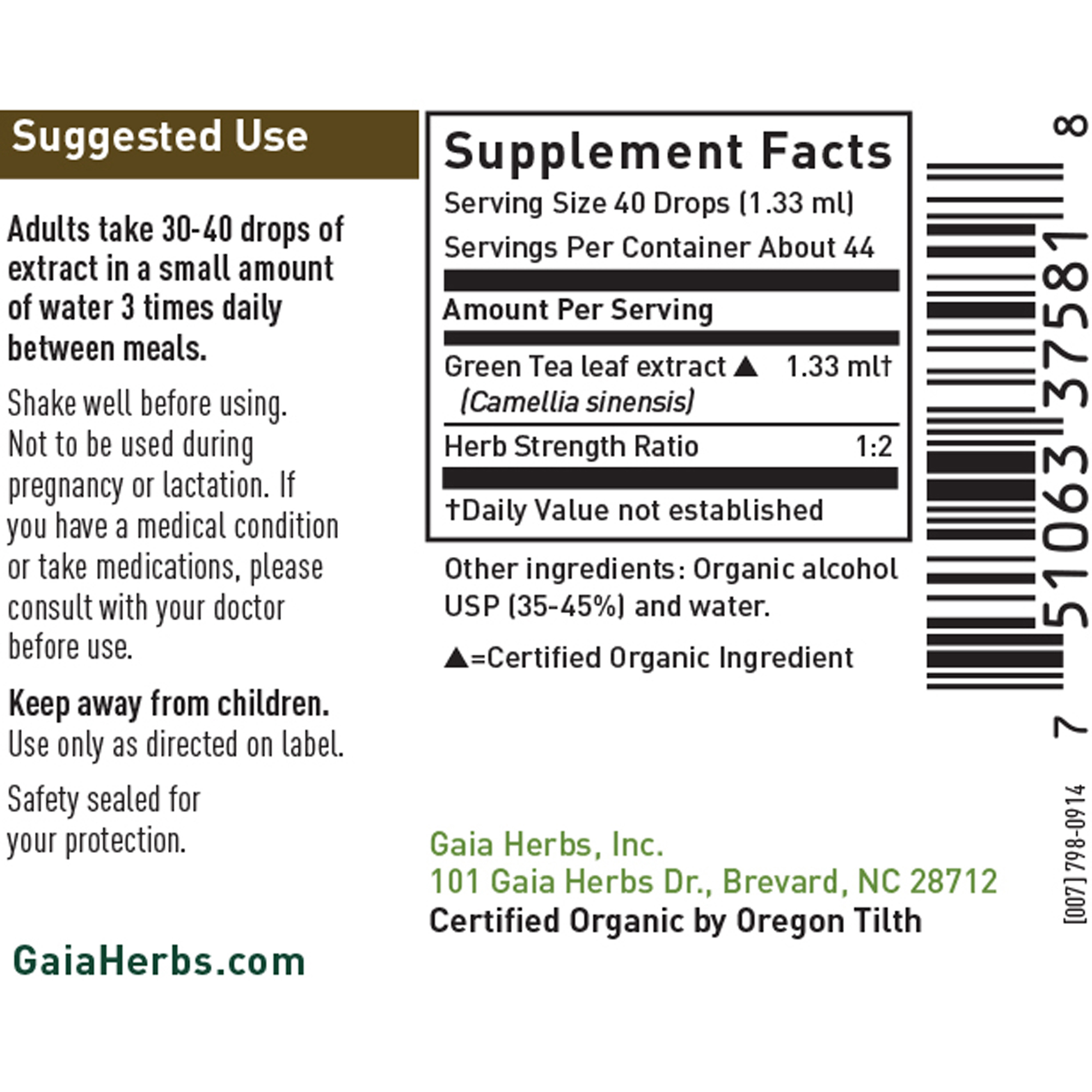 (Camelia sinensis) in Water and Organic Grain Alcohol USP (35-45%)