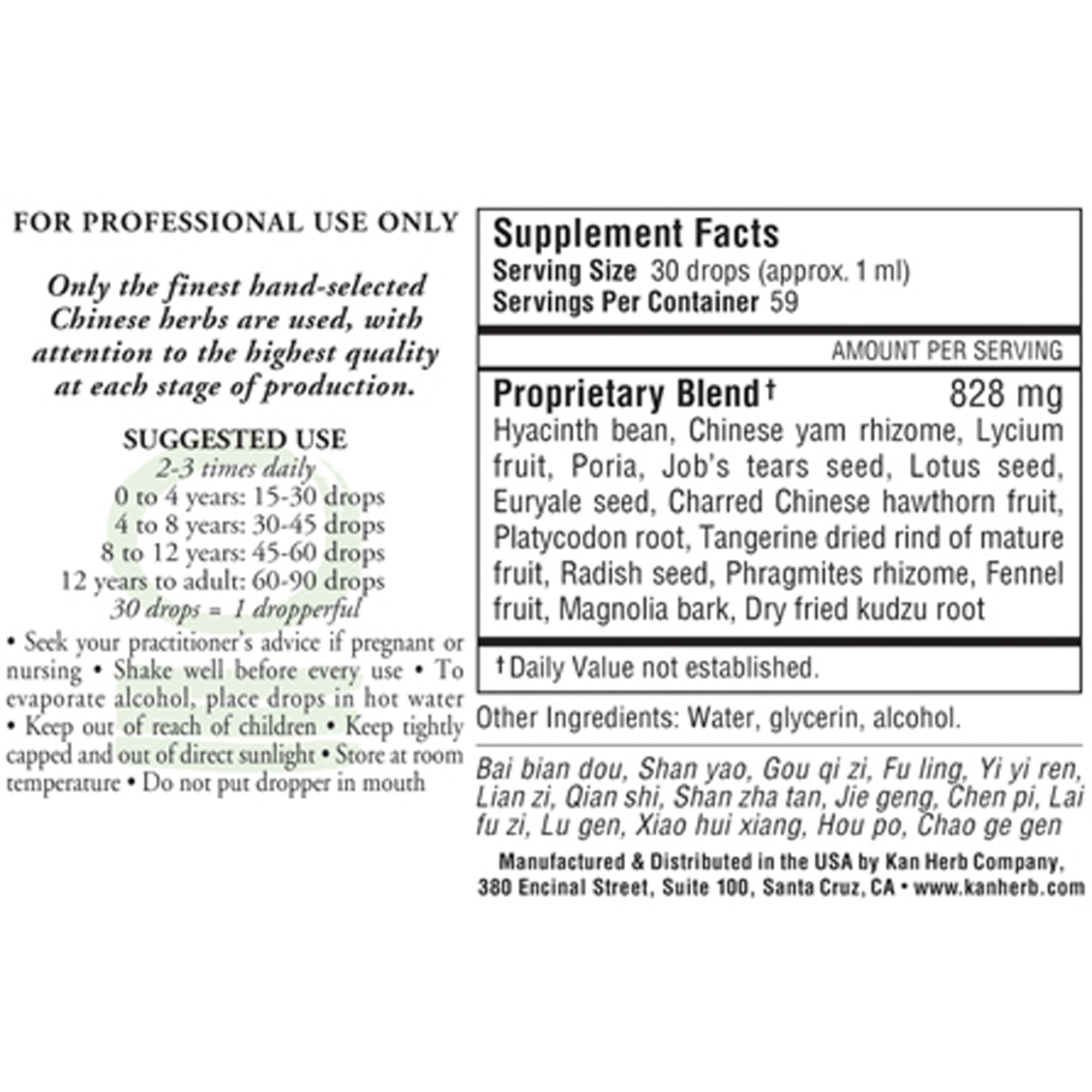 0-4 years (15-30 drops). 4-8 years (30-45 drops). 8-12 years (45-60 drops). 12-adult (60-90 drops). Always use 2-3 times daily.