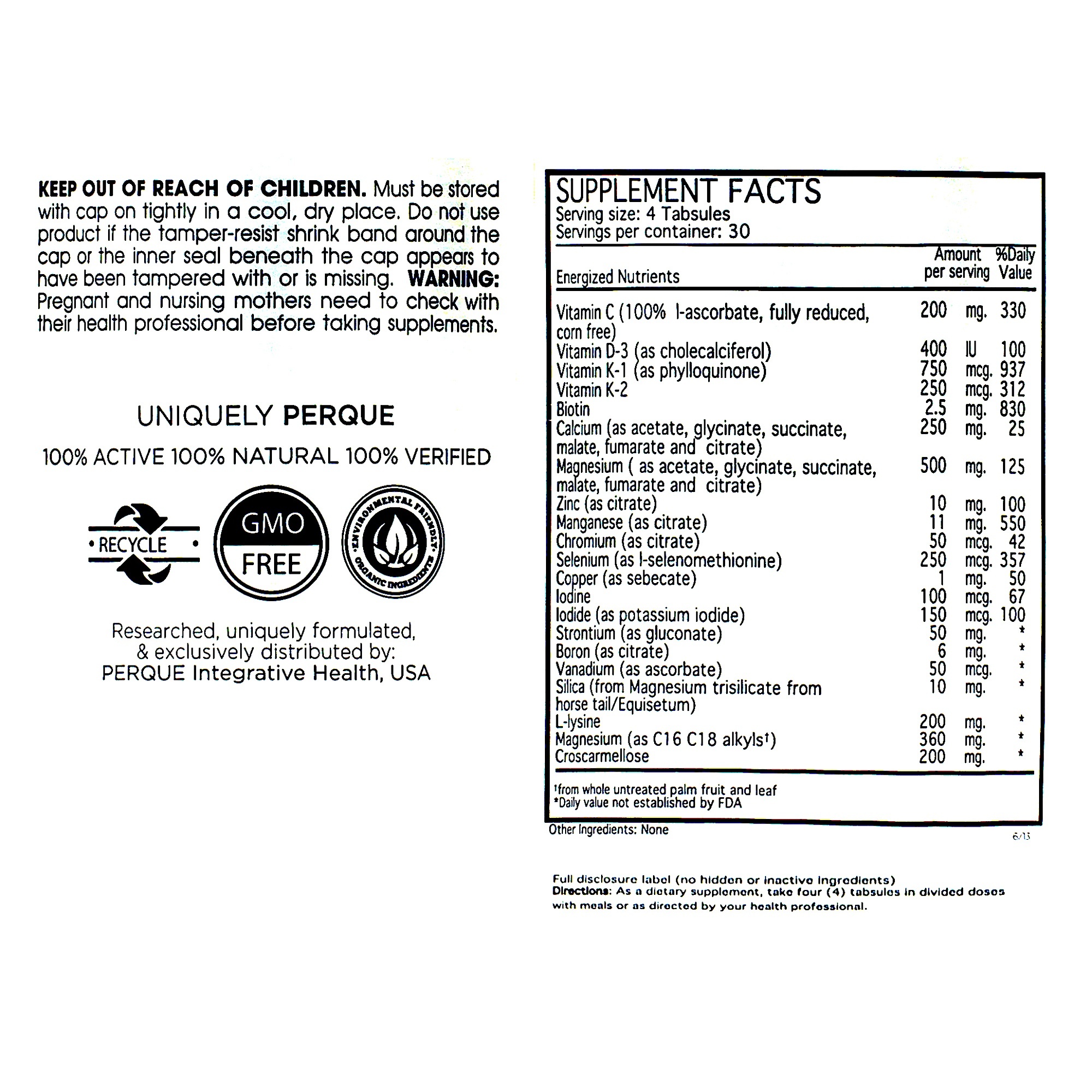 Serving Size: Four Tablets