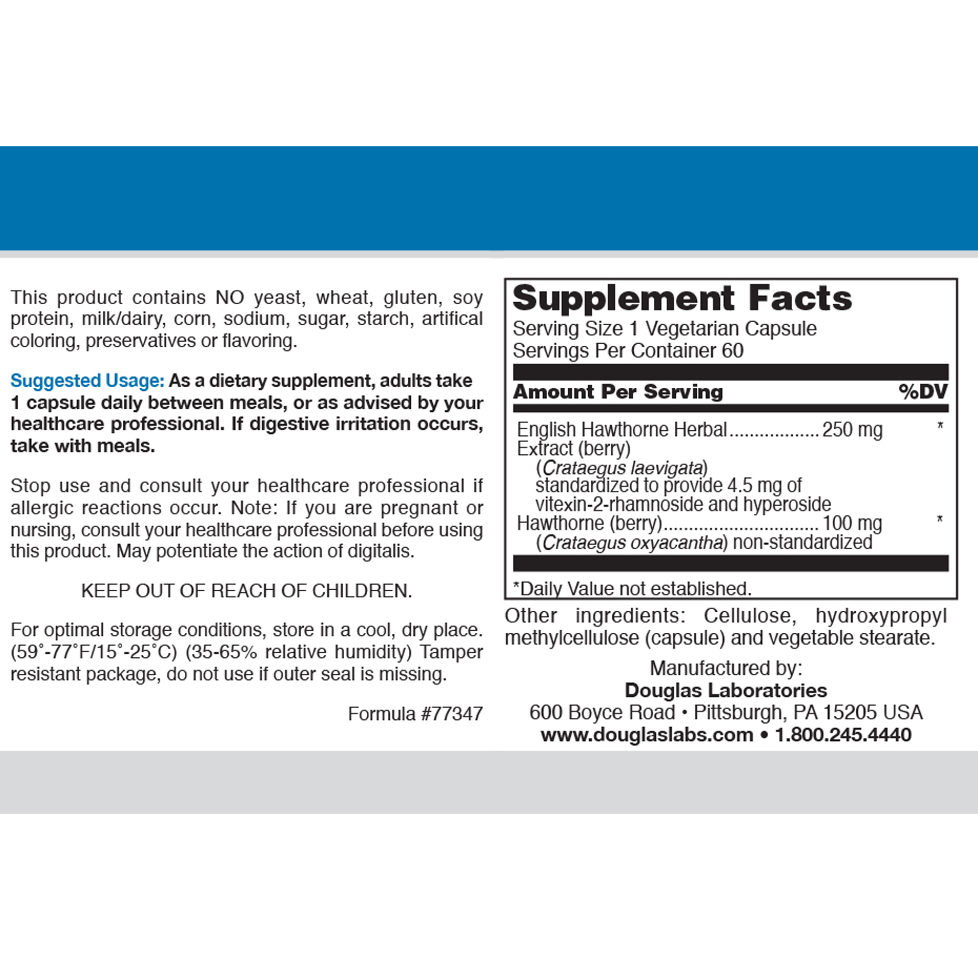 Hawthorne Max-V vegetarian capsules provide a significant quantity of the flowering tops and berries of the hawthorn tree, Crataegus oxyacantha, standardized to 2% vitexin-2″ rhamnoside. Rich in bioflavonoids, extract of hawthorn has been known for centuries as a potent cardiovascular tonic, improving the function of the heart and circulatory system.