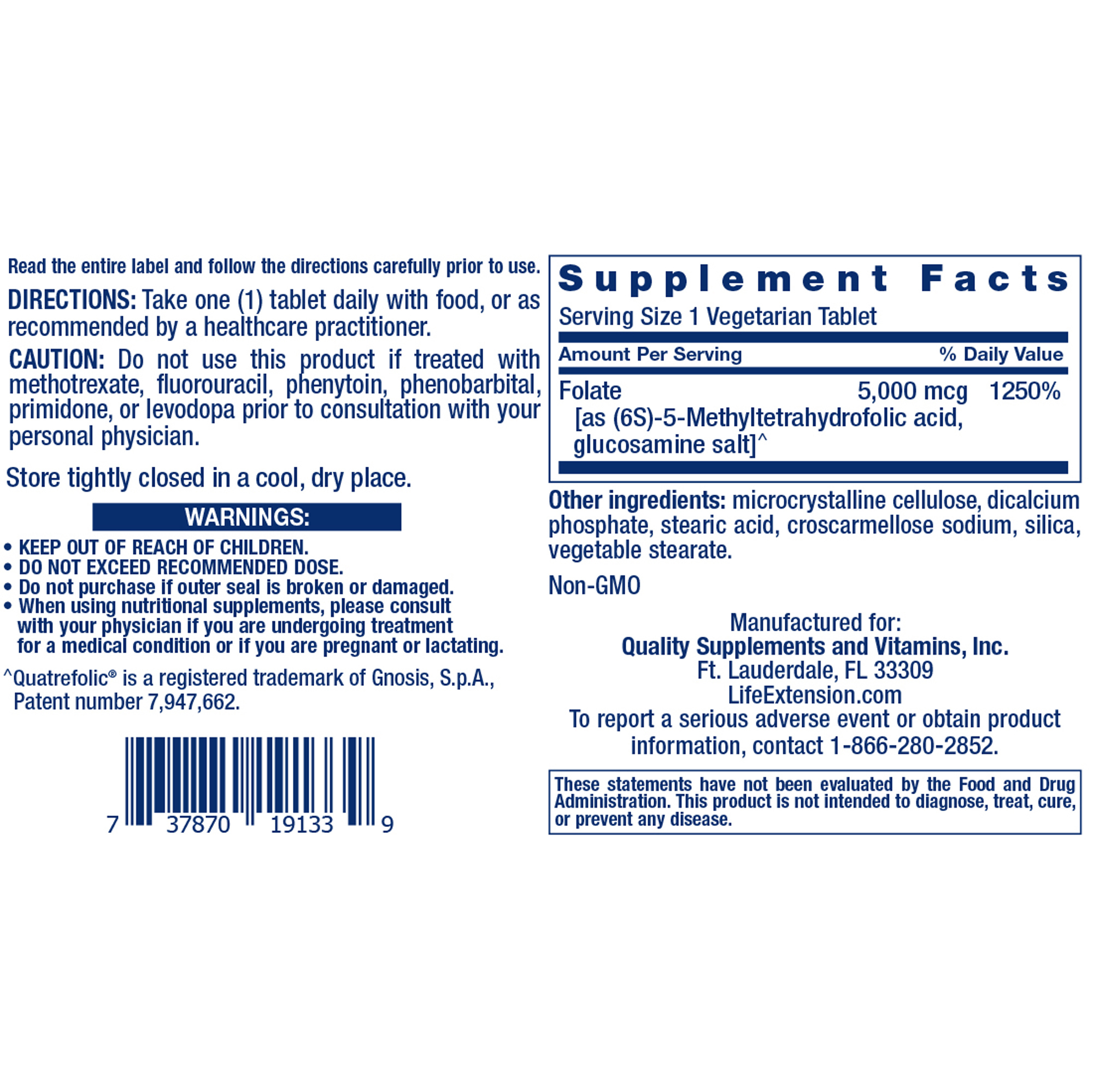 Each vegetarian tablet of High Potency Optimized Folate provides 5, 000 mcg of the metabolically active 5-MTHF form of folate.