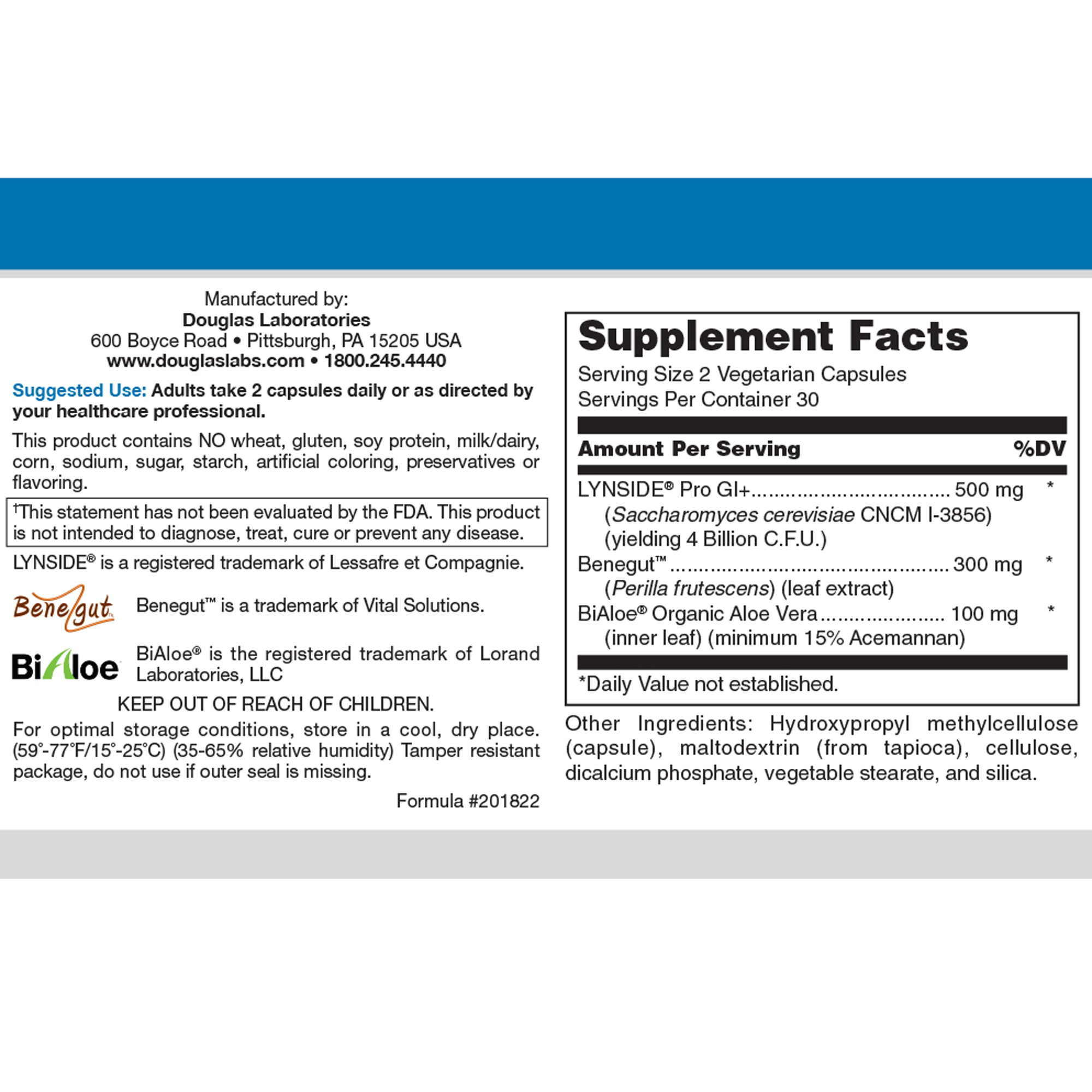 LYNSIDE Pro GI+ Saccharomyces cerevisiae is a probiotic shown to affect nuclear colonic receptors and provide a healthy balanced microflora.† BiAloe organic aloe vera leaf is a natural buffer to the stomach and colonic pH, and contributes to healthy bacterial gut flora.†