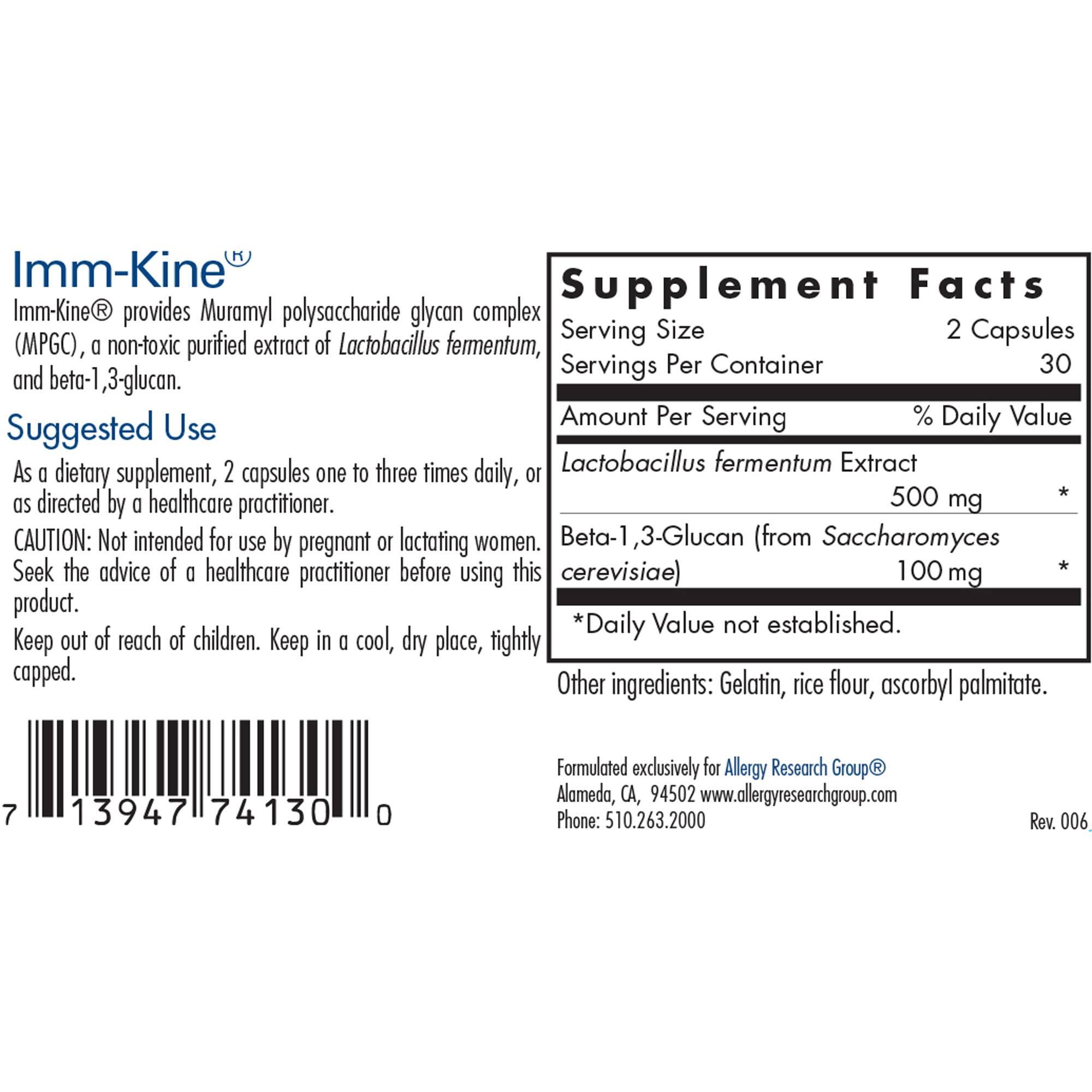 Imm-Kine provides Muramyl polysaccharide glycan complex (MPGC), a non-toxic purified extract of Lactobacillus fermentum, and beta-1, 3-glucan.