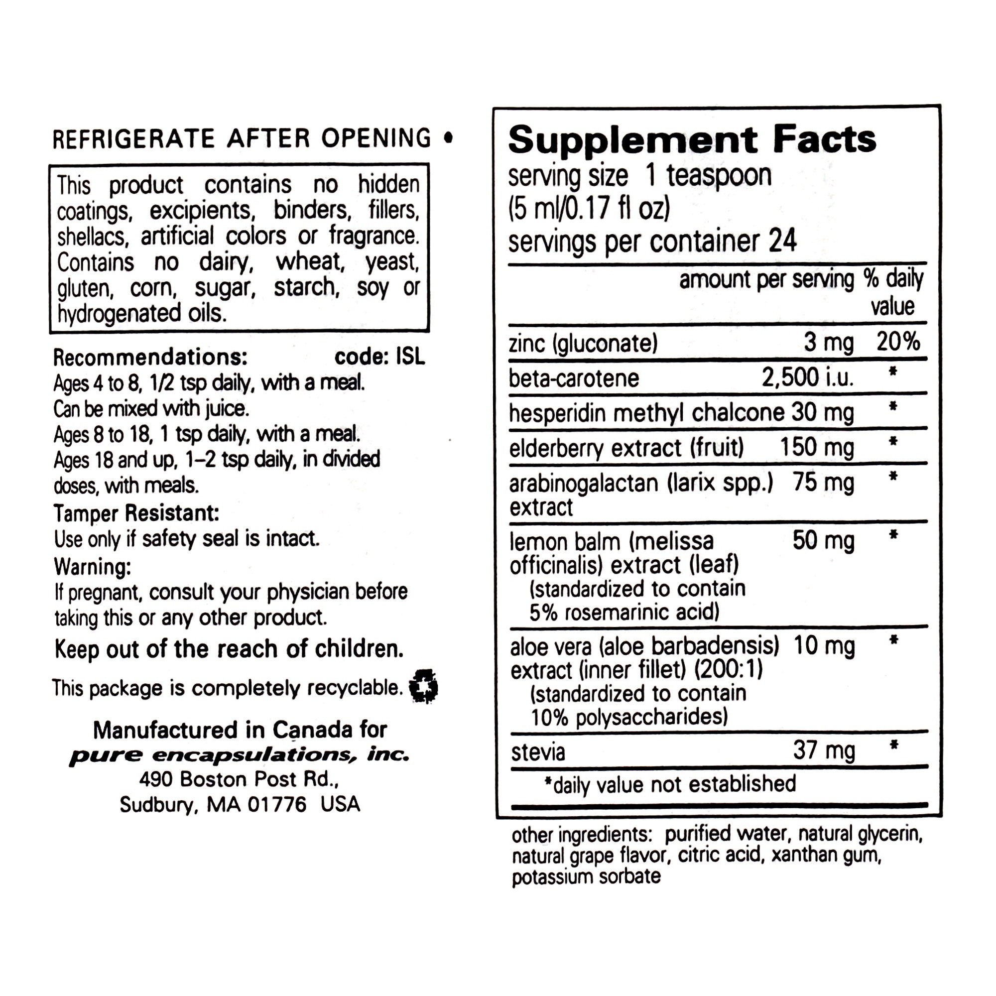 Elderberry and lemon balm extracts offer immune enhancing anthocyanins, flavonoids and polyphenols while polysaccharides from arabinogalactan and aloe provide complementary support for immune cell function and healthy immune mediator activity. Hesperidin plays the important role of maintaining healthy mast cell function while zinc and beta-carotene serve as the nutritional foundation for supporting healthy immune system function.*