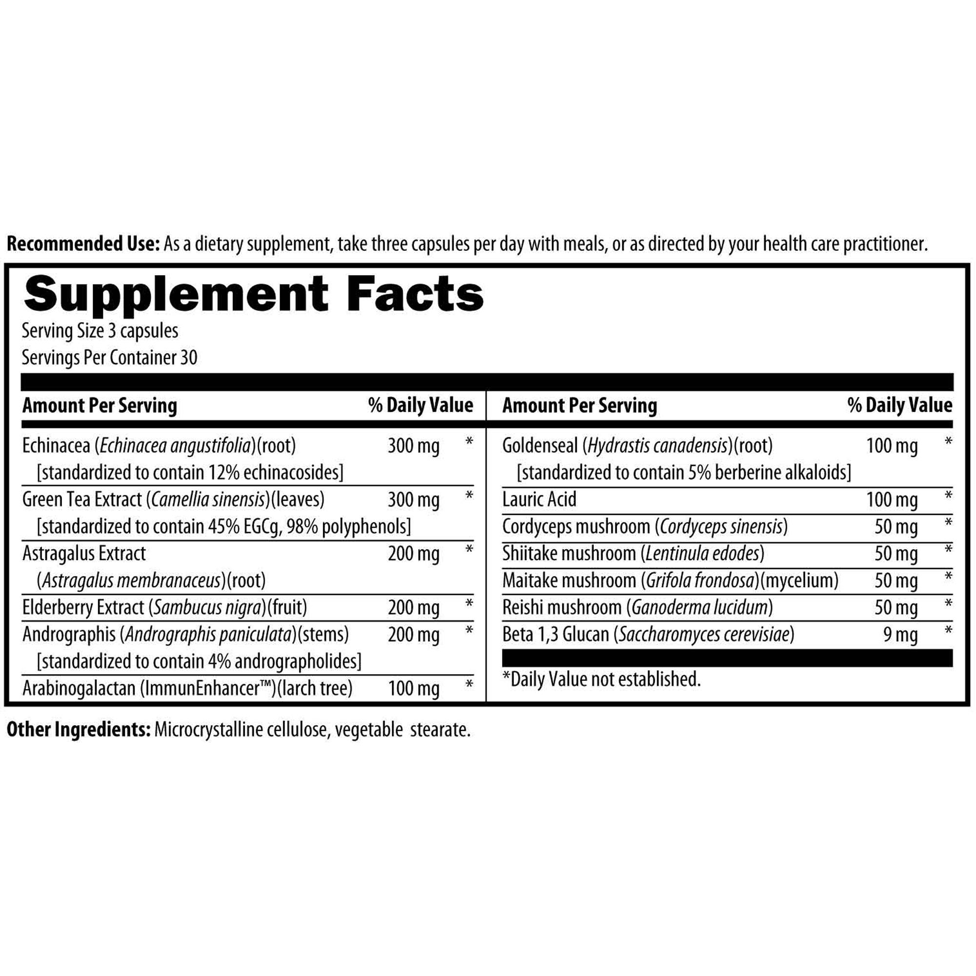 This formula contains green tea standardized to a very high level of EGCg as well as standardized Echinacea augustifolia, and Andrographis paniculata. Standardized herbs contain optimal and consistent amounts of the most active compounds.