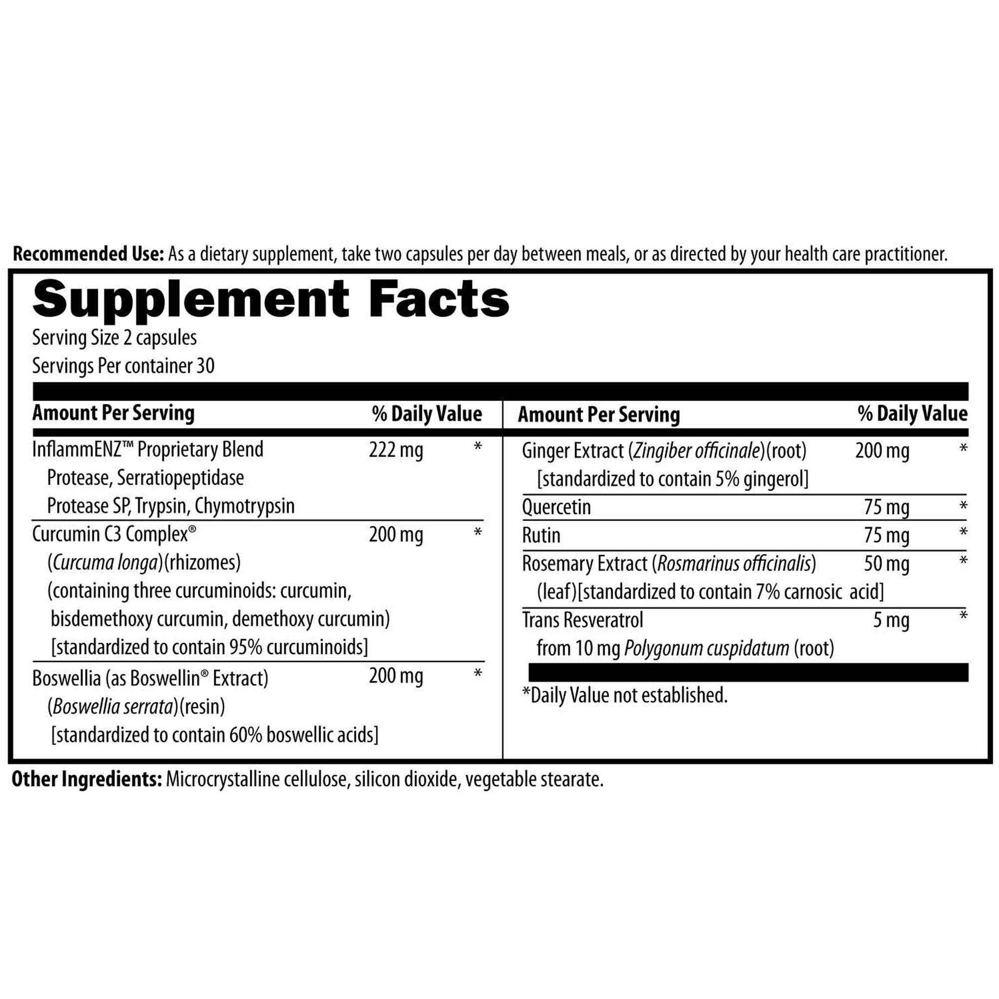 Inflammatone™ is a combination of herbs, nutrients and proteolytic enzymes for modulating the inflammatory response, supporting the natural clearance of proteins like kinin and fibrin, and for supporting healthy lymphatic drainage. The ingredients in Inflammatone™ provide natural anti-inflammatory effects and protect against oxidative stress.