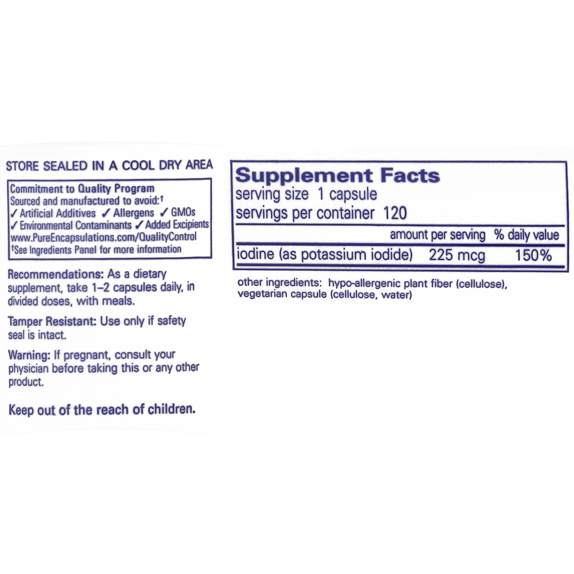 Pure Encapsulations Iodine provides natural support for the thyroid gland, helping to maintain healthy cellular metabolism.