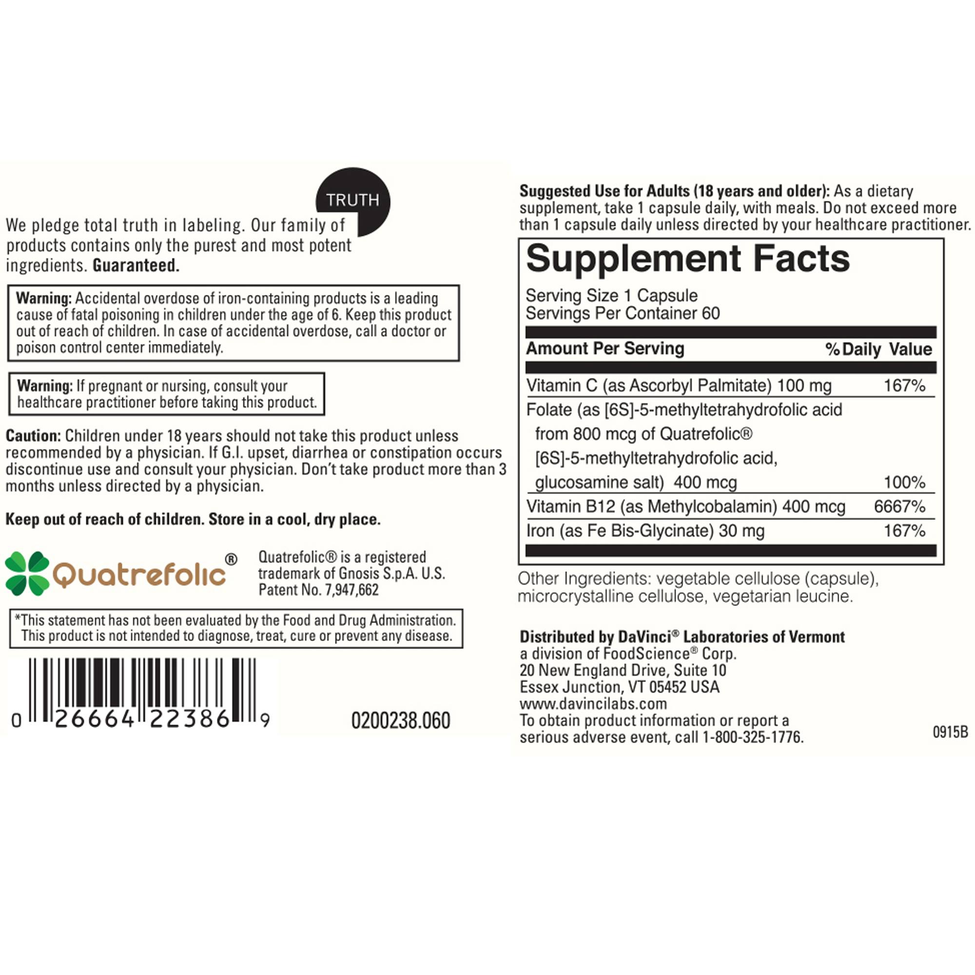 (as [6S]-5-methyltetrahydrofolic acid from 800 mcg of Quatrefolic [6S]-5-