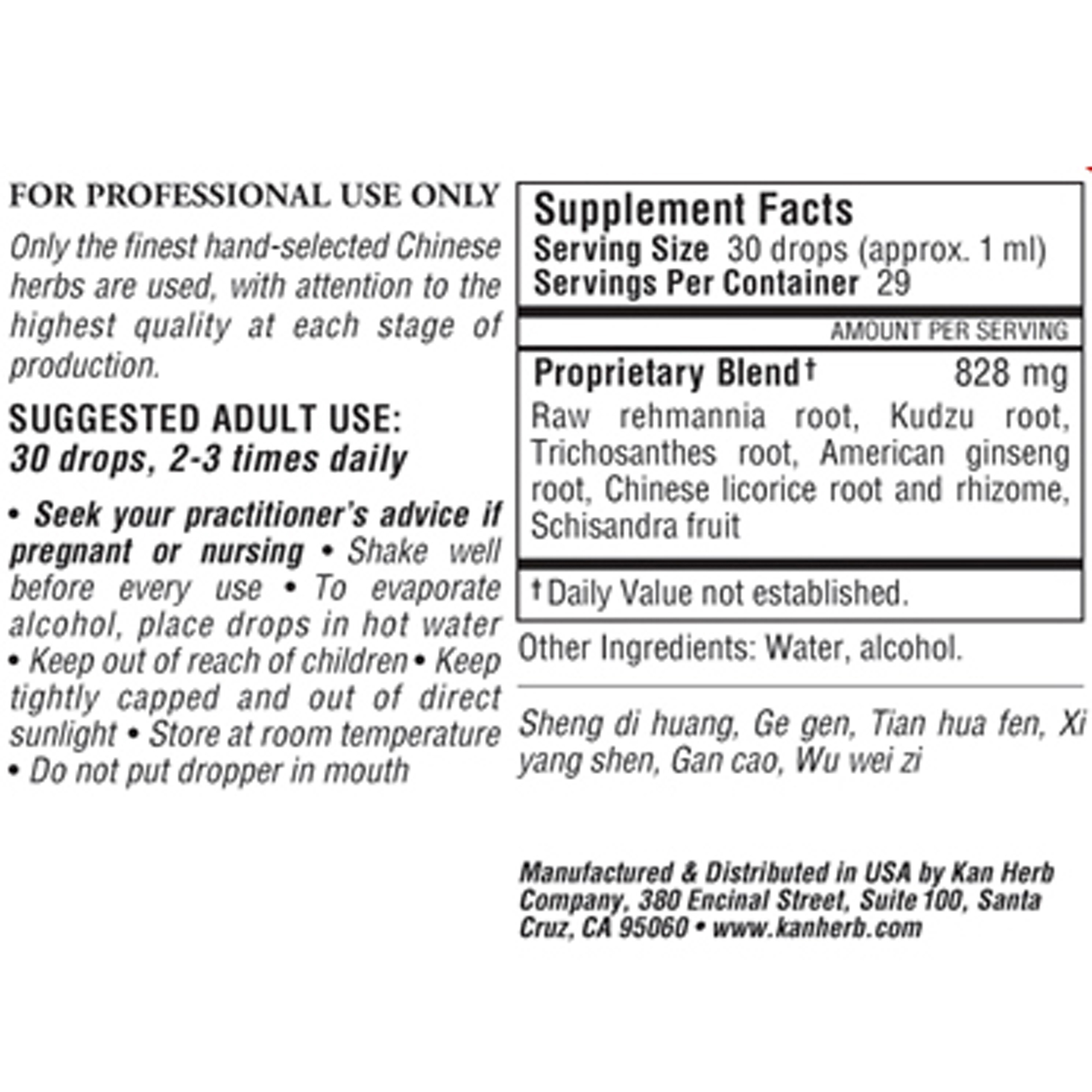 10-20 drops, 2-3 times daily. Shake well before use.