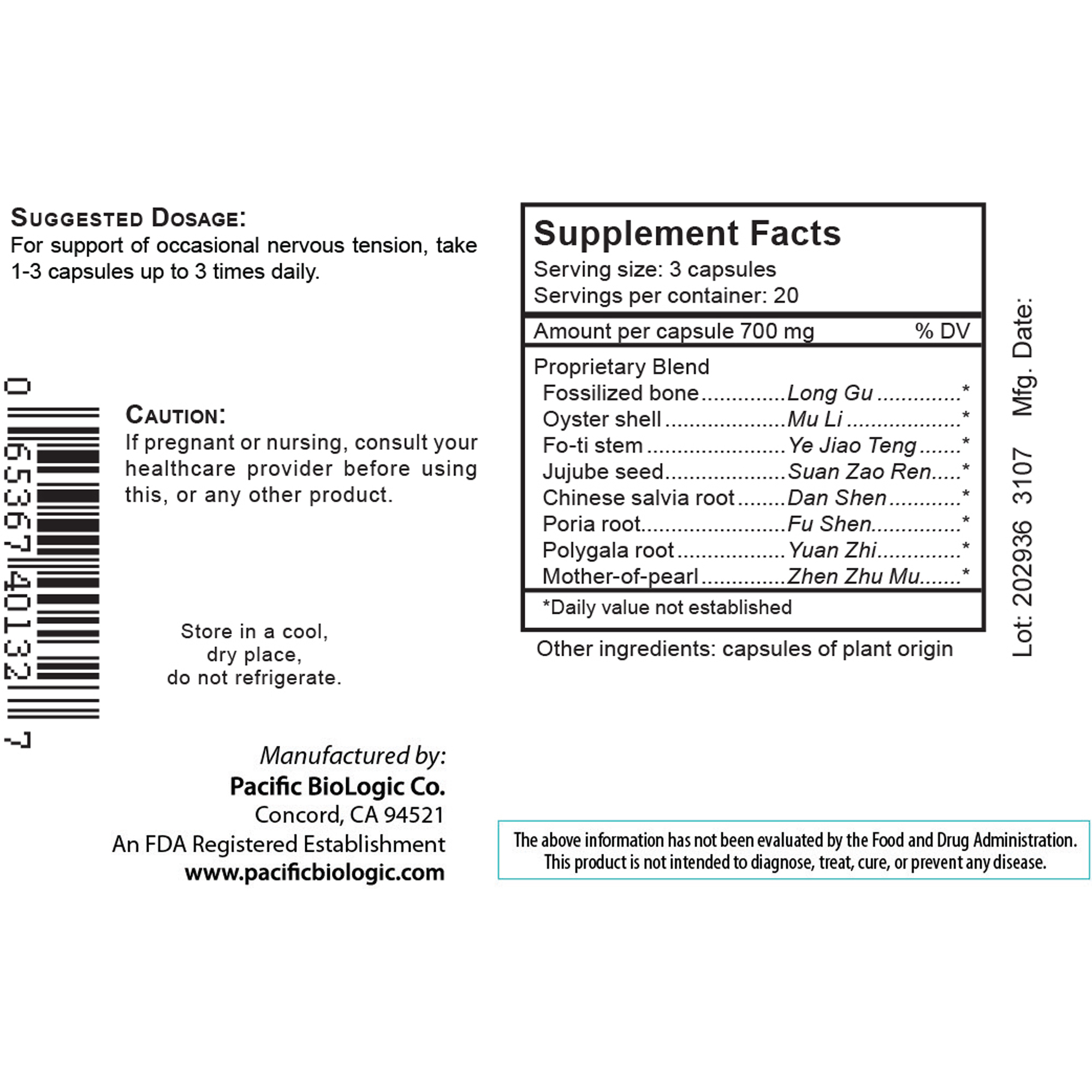 SUGGESTED DOSAGE: For support of occasional nervous tension, take 1-3 capsules up to 3 times daily.