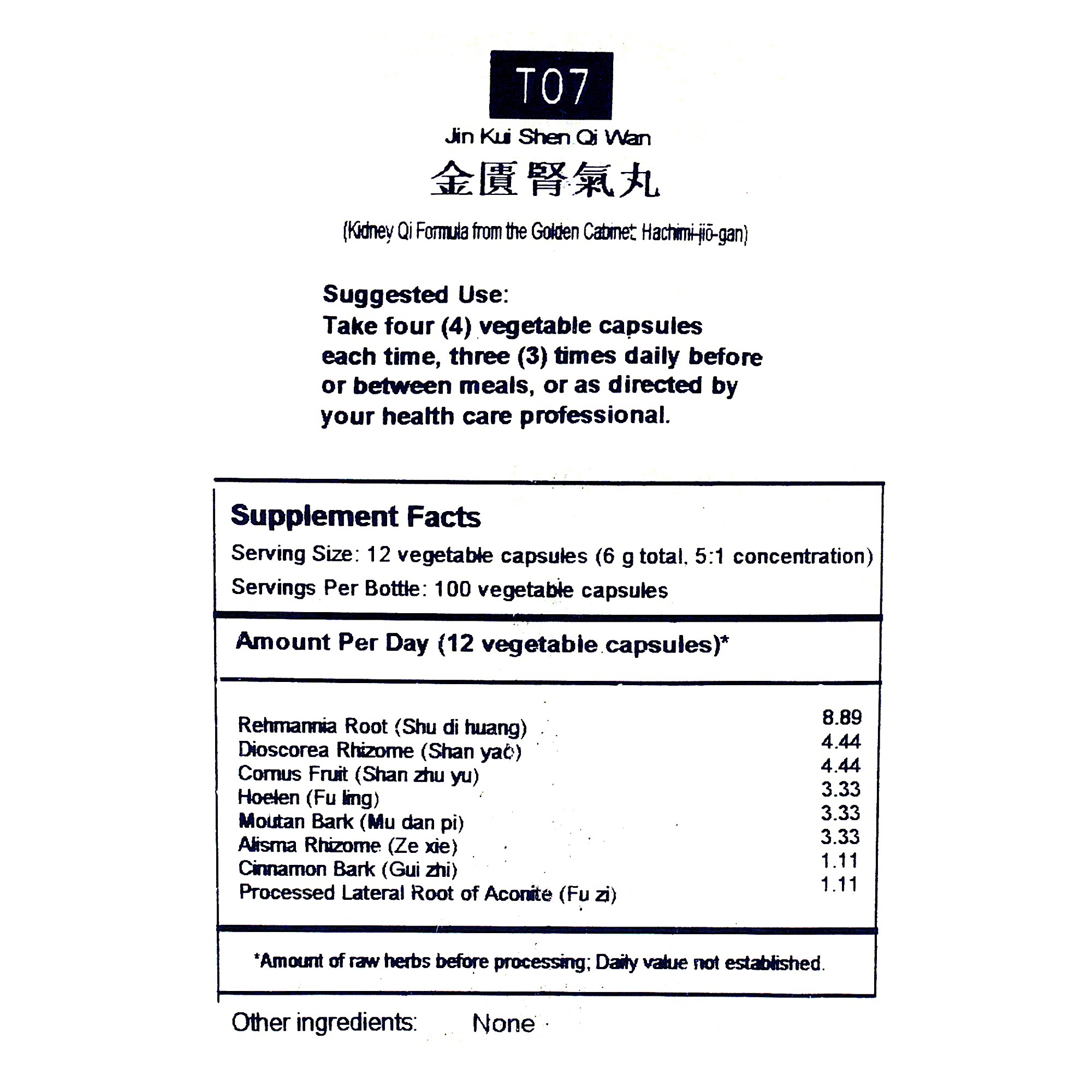 Kidney Qi Formula (T-07) 100c is available by Honso, Usa.