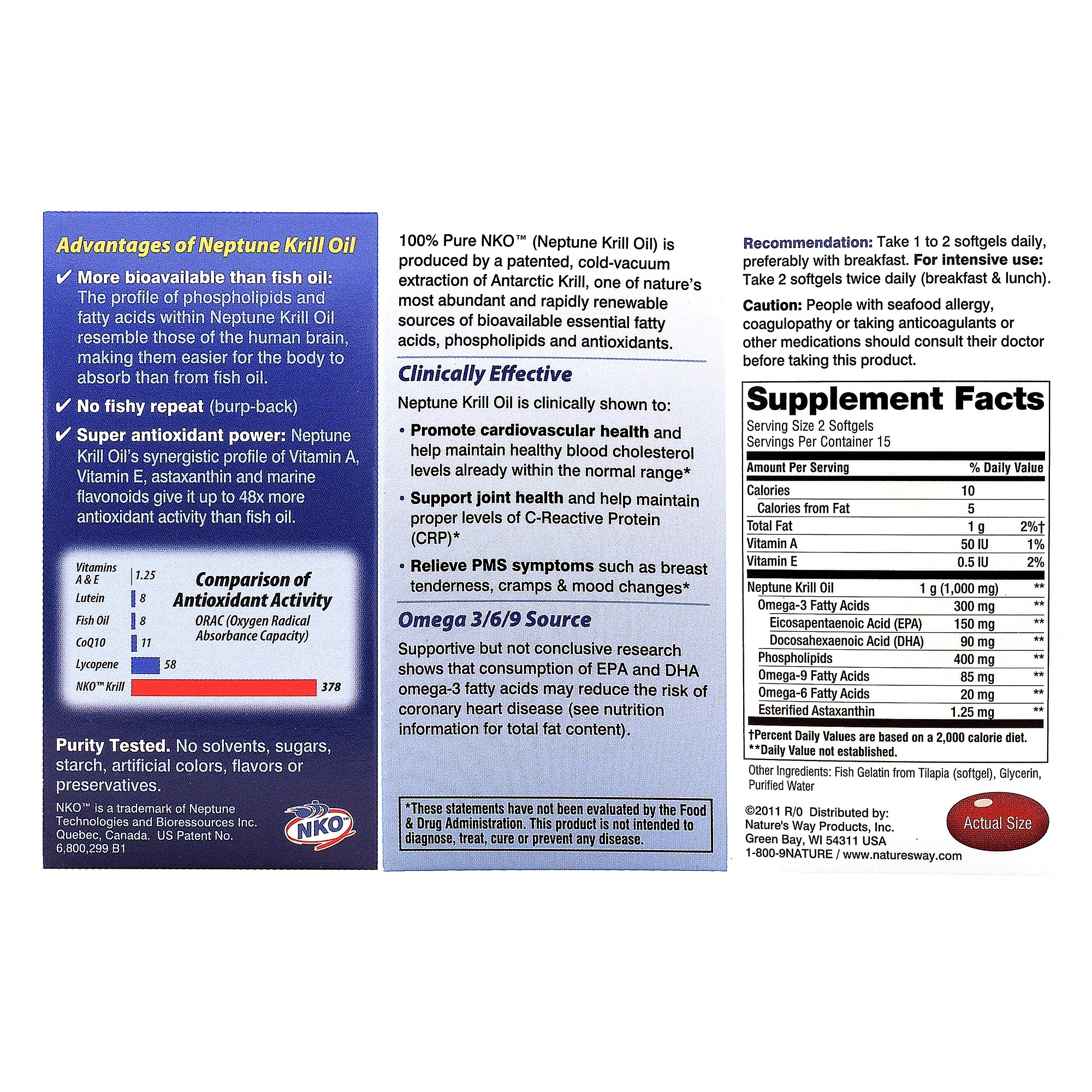 100% Pure NKO (Neptune Krill Oil) is produced by a patented, cold-vacuum extraction of Antaractic Krill, one of natures most abundant and rapidly renewable sources of bioavailable essential fatty acids, phospholipids and antioxidants.