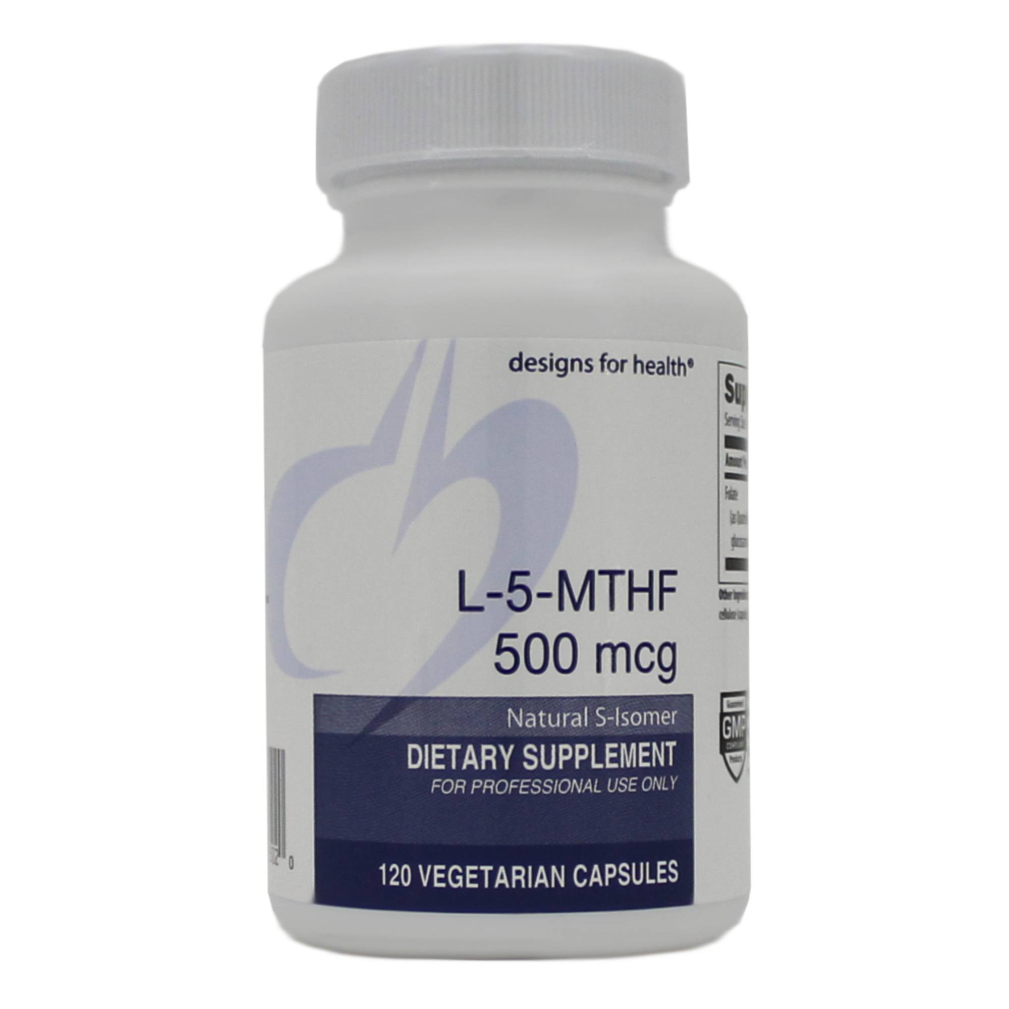L-5-MTHF provides the all-natural form of folate. Folate is essential for cell division and growth, and also works to balance the homocysteine pathway. This formula provides 500 mcg per capsule of folate in the bioidentical, bioactive form, 5-methyltetrahydrofolate. L-5-MTHF (the “L” signifying that it is the all-natural [6S] isomer) is the active circulating form of folate found in the body and one of the several forms found in food. In nature it is found only as this [6S] isomer, which is why DFH uses L-5-MTHF, the natural isomer, rather than the mixed (or racemic) form. Our L-5-MTHF uses a patented, innovative form of folate which has demonstrated high bioavailability and solubility as well as long lasting stability. L-5-MTHF helps to increase blood folate levels much better than folic acid.