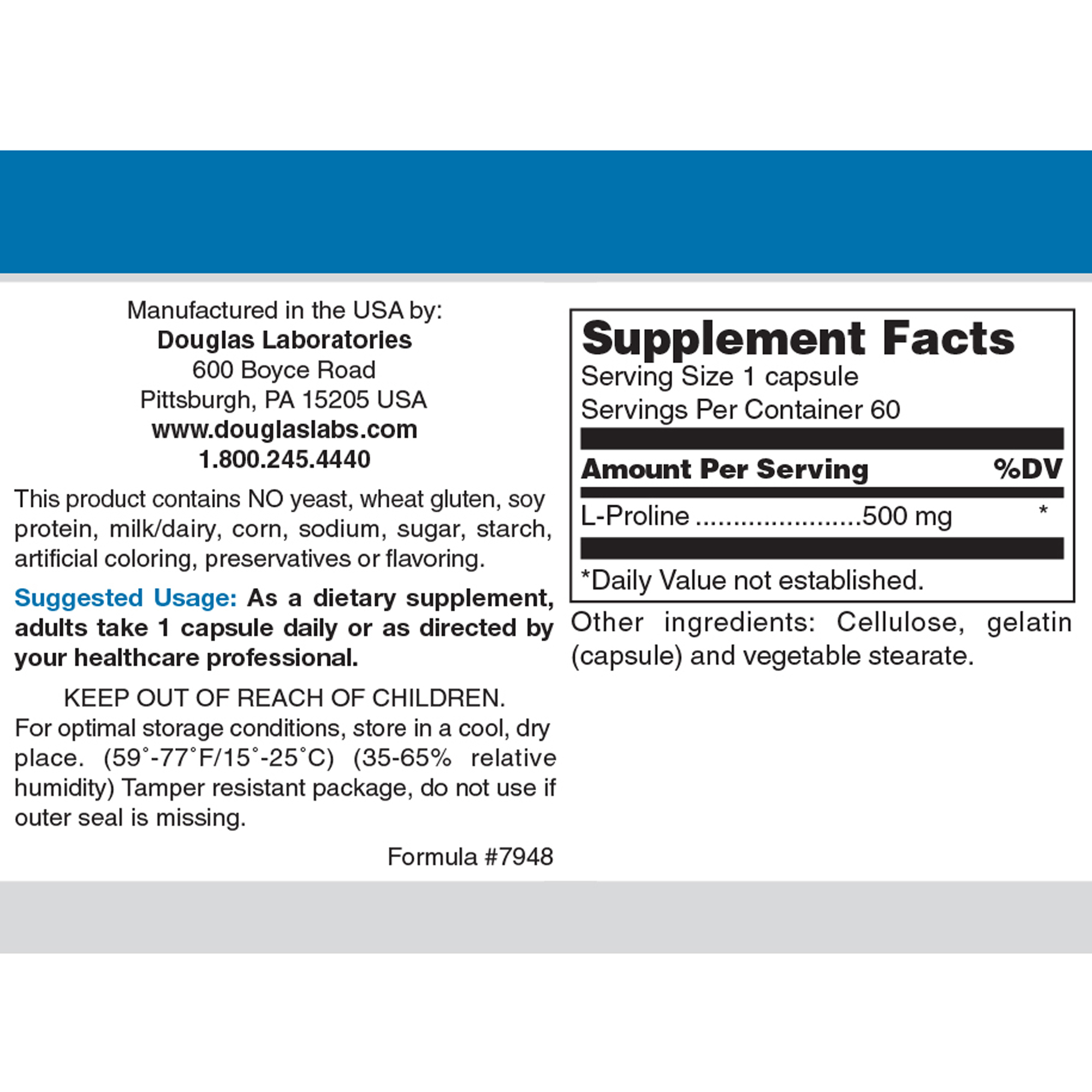 L-Proline supplies 500 mg of the amino acid L-proline in each capsule.