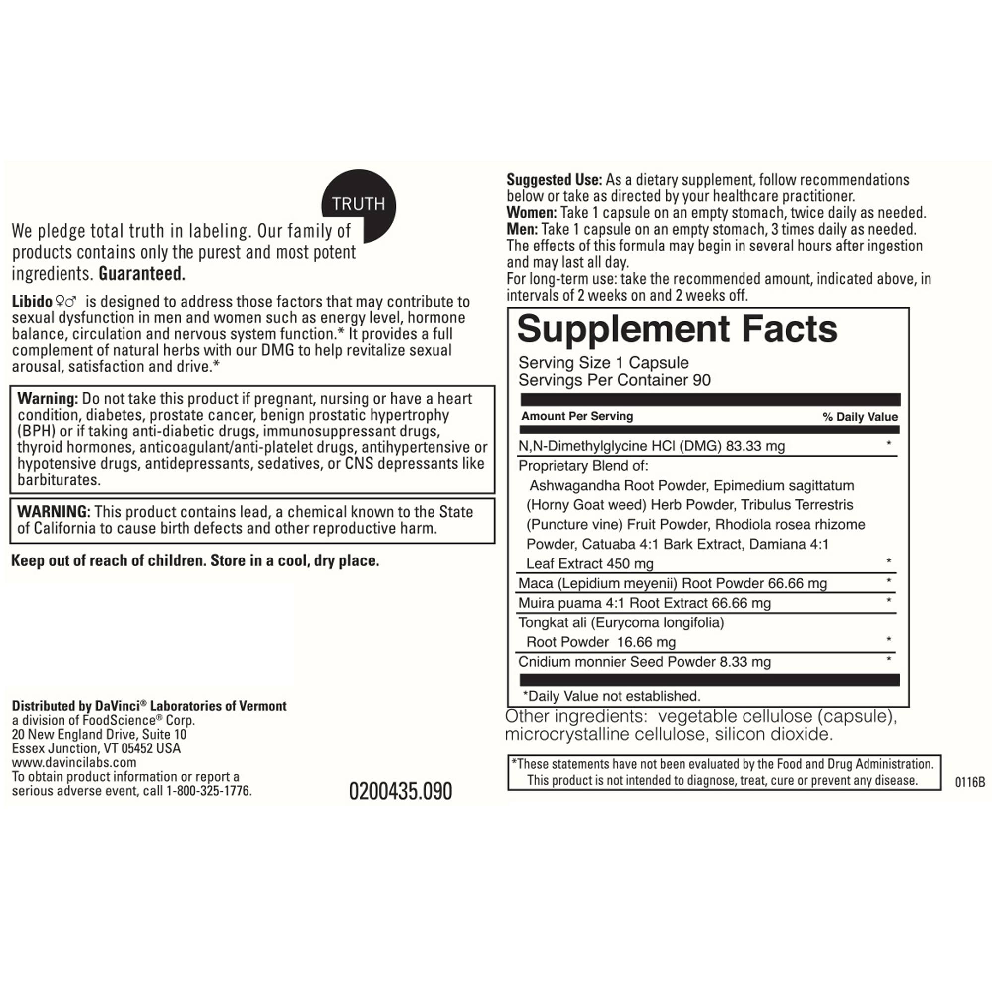 A dietary supplement for men and women to support healthy sexual drive, pleasure and function.* Libido is designed to address those factors that may contribute to sexual dysfunction in men and women such as energy level, hormone balance, circulation, and nervous system function. It provides a full complement of natural herbs with our patented DMG to help revitalize sexual arousal, satisfaction and drive.*
