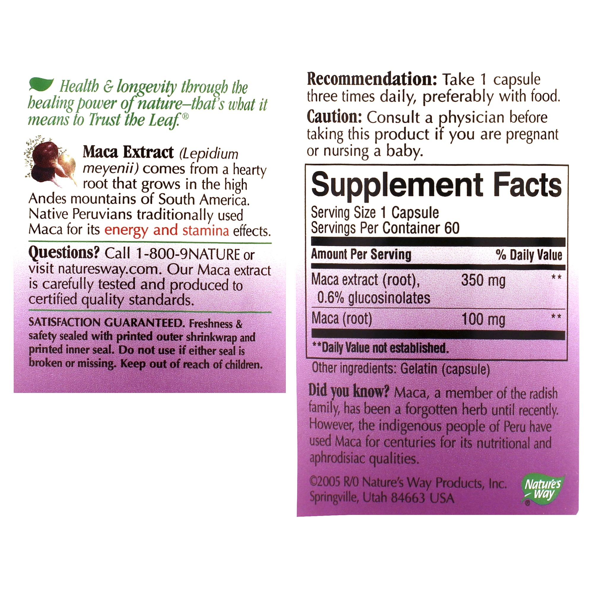 Maca extract comes from a hearty root that grows in the high Andes mountains of South America. Native Peruvians traditionally used Maca for its energy and stamina effects.