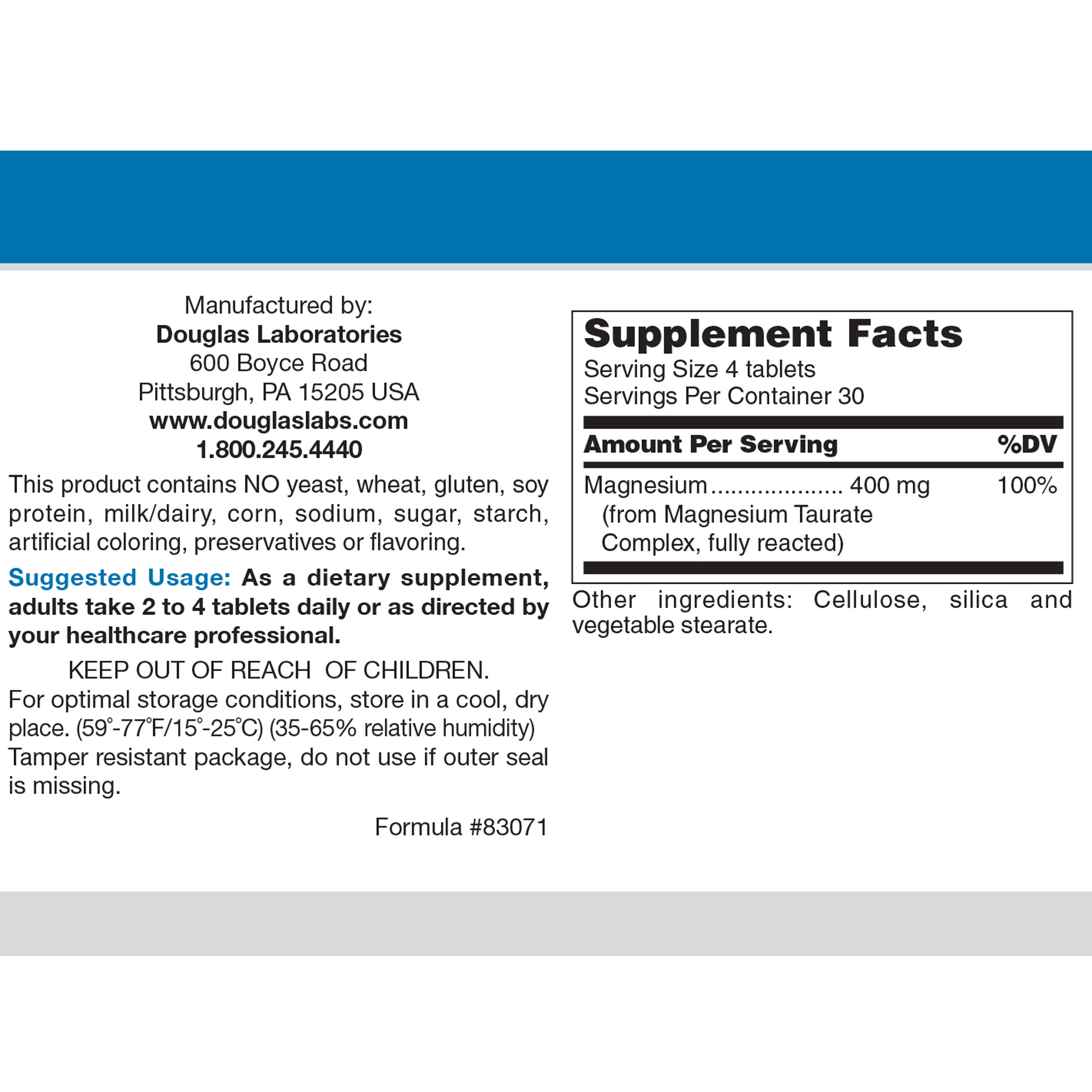 Magnesium Taurate 400 tablets deliver 400 mg of elemental magnesium in their bioavailable taurate forms.