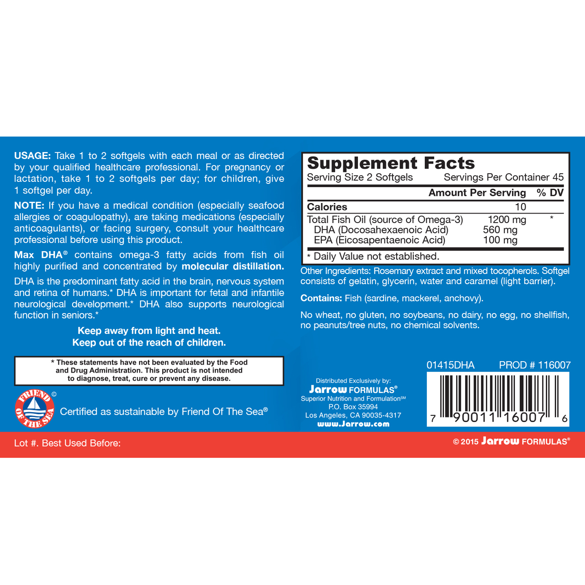 Max DHA contains omega-3 fatty acids from fish oil highly purified and concentratedby molecular distillation.