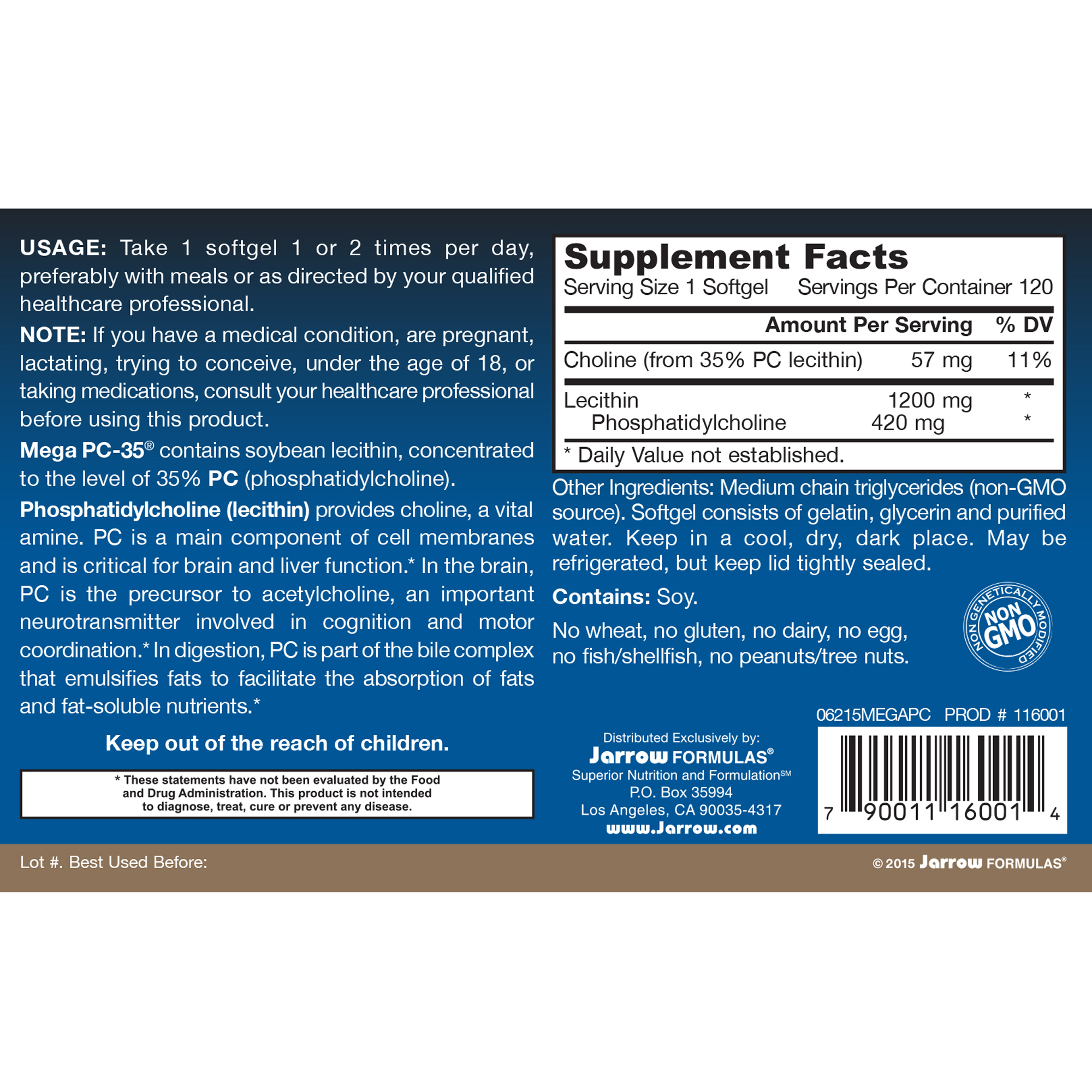 Mega PC-35 contains soybean lecithin, concentrated to the level of 35% PC (phosphatidylcholine).