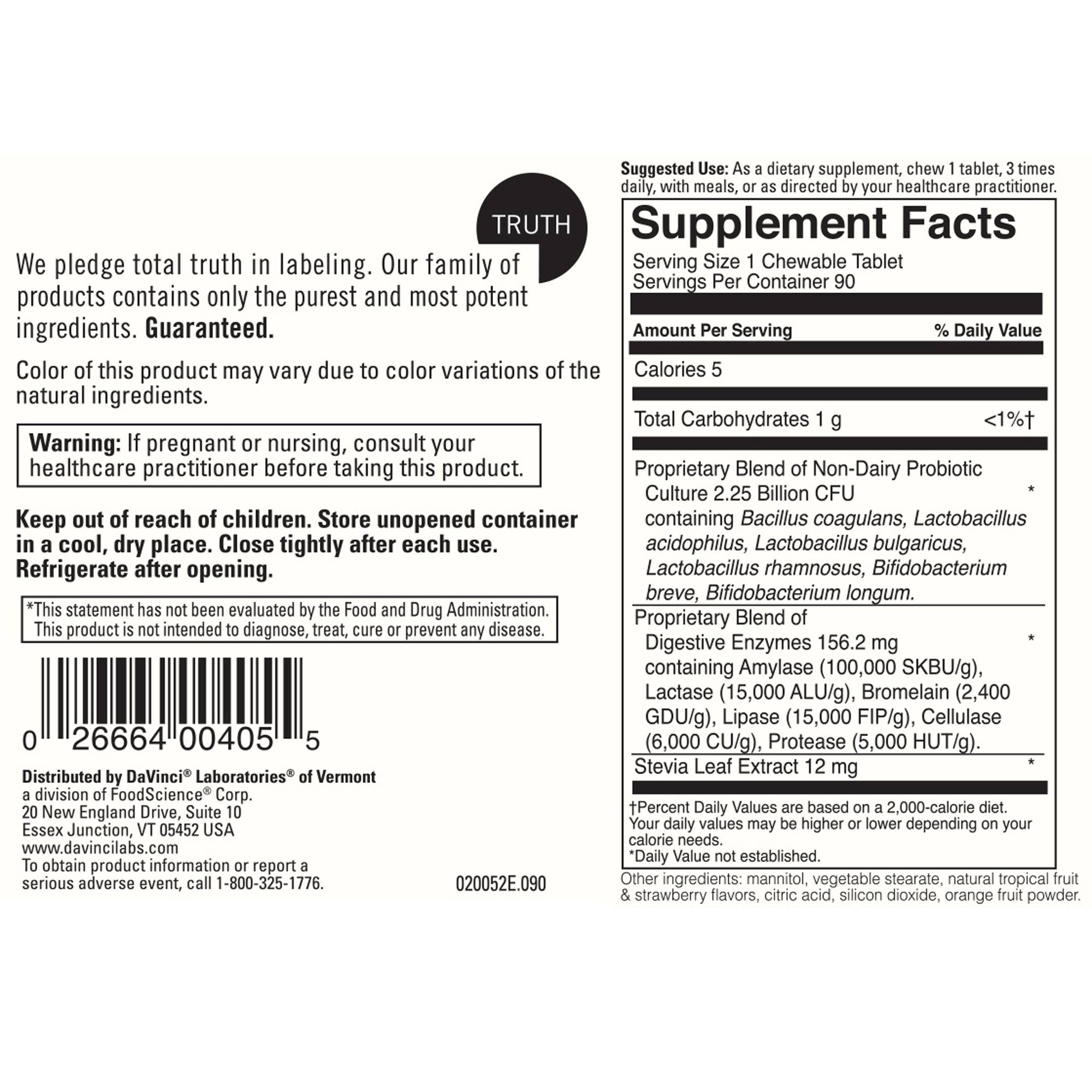 Mega Probiotic ND with Digestive Enzymes Chewable is a comprehensive and completely vegetarian supplement designed to support digestive tract function and nutrient absorption.* It contains non-dairy probiotics and a broad-spectrum of enzymes that work together to support digestion and GI tract health.* Mega Probiotic ND with Digestive Enzymes Chewable is vegetarian and ideal for people of all ages.* Each chewable tablet provides 2.5 billion beneficial microorganisms along with Amylase, Bromelain, lactase, Lipase, Protease and cellulose in a delicious, natural orange flavored chewable tablet.