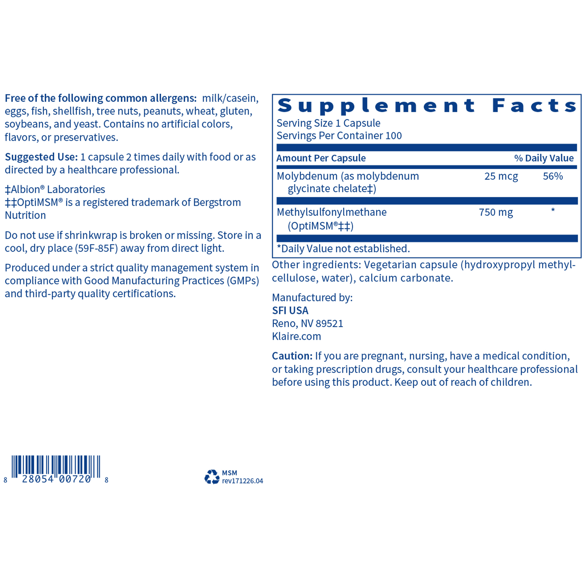 ‡Albion® Laboratories. ‡‡OptiMSM® is a registered trademark of Bergstrom Nutrition.