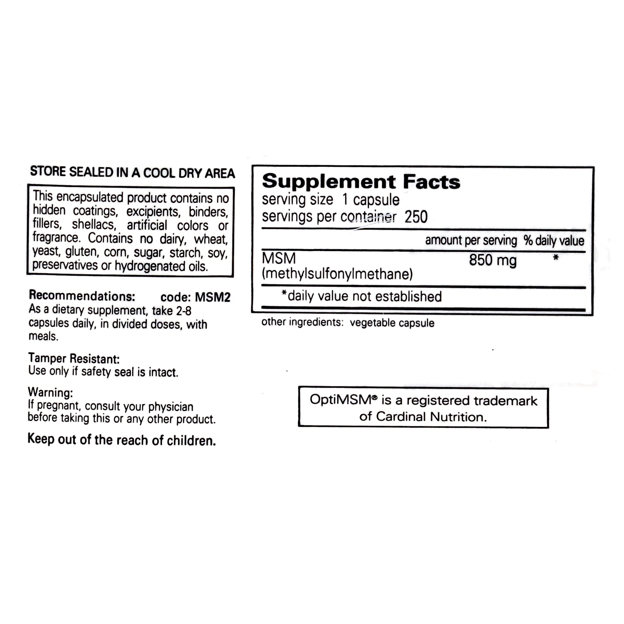 Pure Encapsulations MSM (methylsulfonylmethane or dimethylsulfone) is a source of organic sulfur found naturally in the human body. MSM, the major metabolite of DMSO (dimethyl sulfoxide), is 34% elemental sulfur, a compound which is crucial in maintaining healthy tissues. While sulfur supports many functions, it is well known for maintaining connective tissue health. Sulfur also supports tissue containing significant amounts of collagen and keratin, including hair, skin, and nails. Sulfur is essential in methionine, cysteine and serum protein metabolism. Recent, preliminary evidence suggests that MSM provides potential support for healthy immune and respiratory function.
