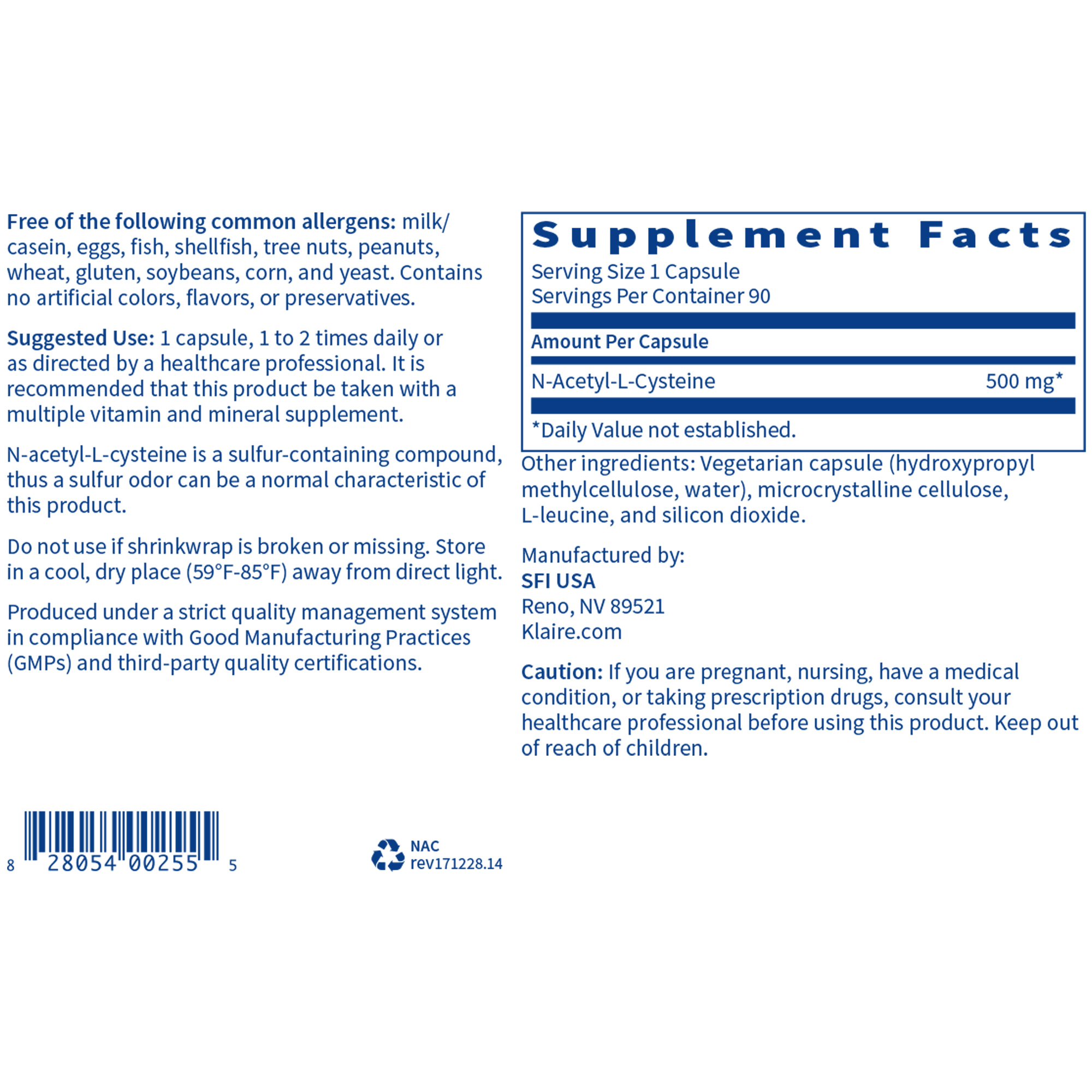 Other Ingredients: Vegetarian capsule (hydroxypropyl methylcellulose, water), microcrystalline cellulose, L-leucine, and silicon dioxide.