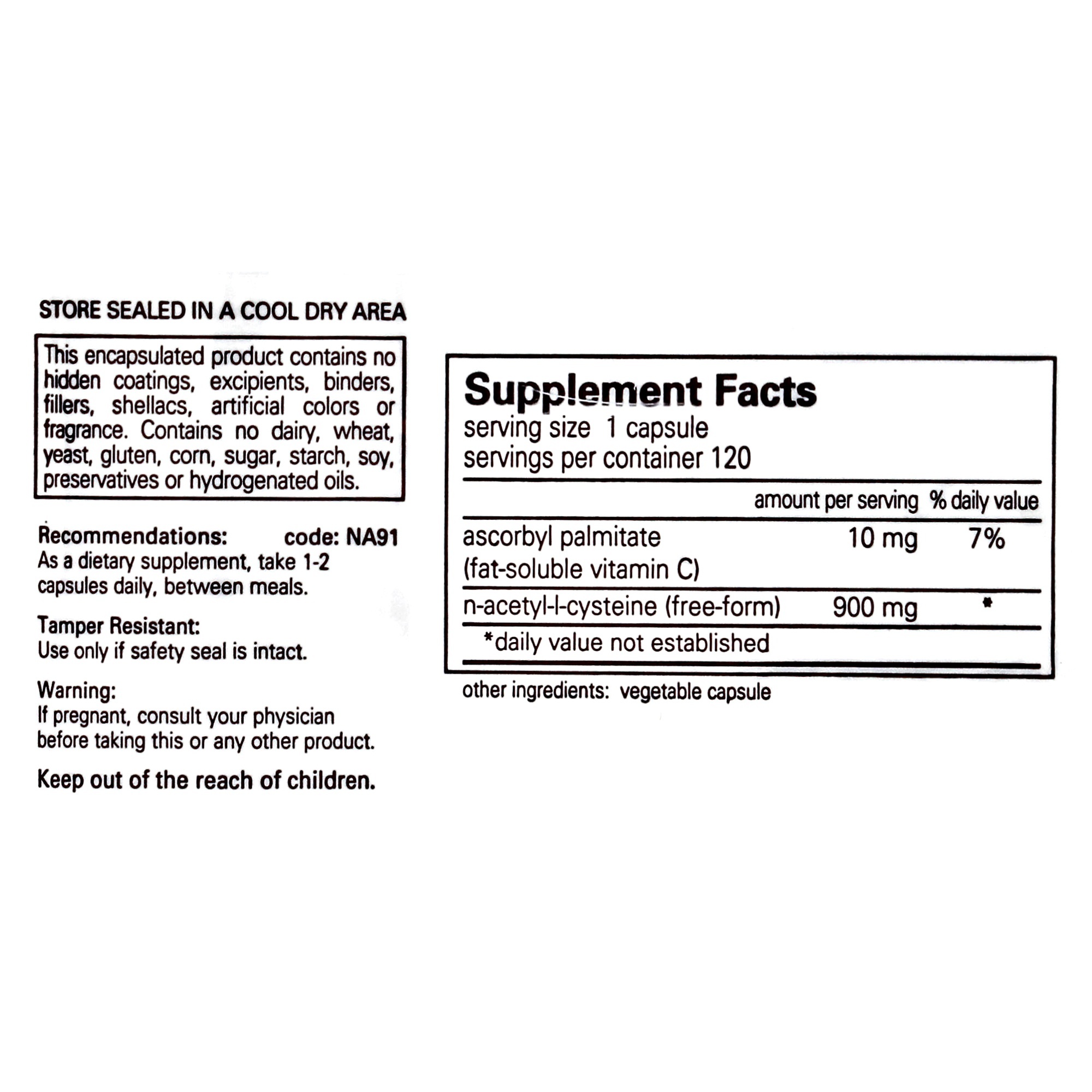 N-Acetyl-l-Cysteine (NAC) is a derivative of the dietary amino acid l-cysteine. NAC has a high affinity for lung tissue, which it supports through mucolytic and antioxidant action. By disrupting disulfide bonds, NAC thins mucus. It is a powerful free radical scavenger and thus supports the bodys natural defense system. NAC supports tissue levels of glutathione, a key component of the antioxidant defense system. It also has the ability to help chelate heavy metals.