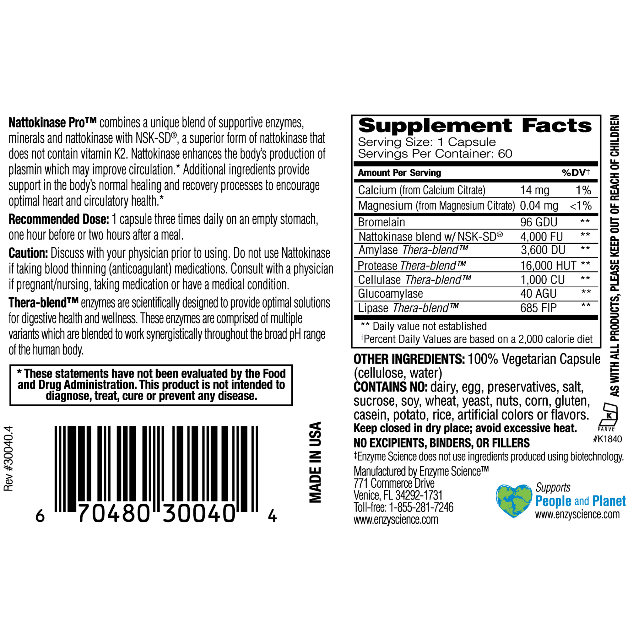 Nattokinase Pro™ contains specialized blends of enzymes including Nattokinase with NSK-SD® – the only form of nattokinase that does not contain vitamin K2 – to enhance the bodys production of plasmin.* Plasmin breaks down excess fibrin, which may improve circulation.* Nattokinase Pro may help maintain already healthy levels of blood clotting factors within a healthy range.