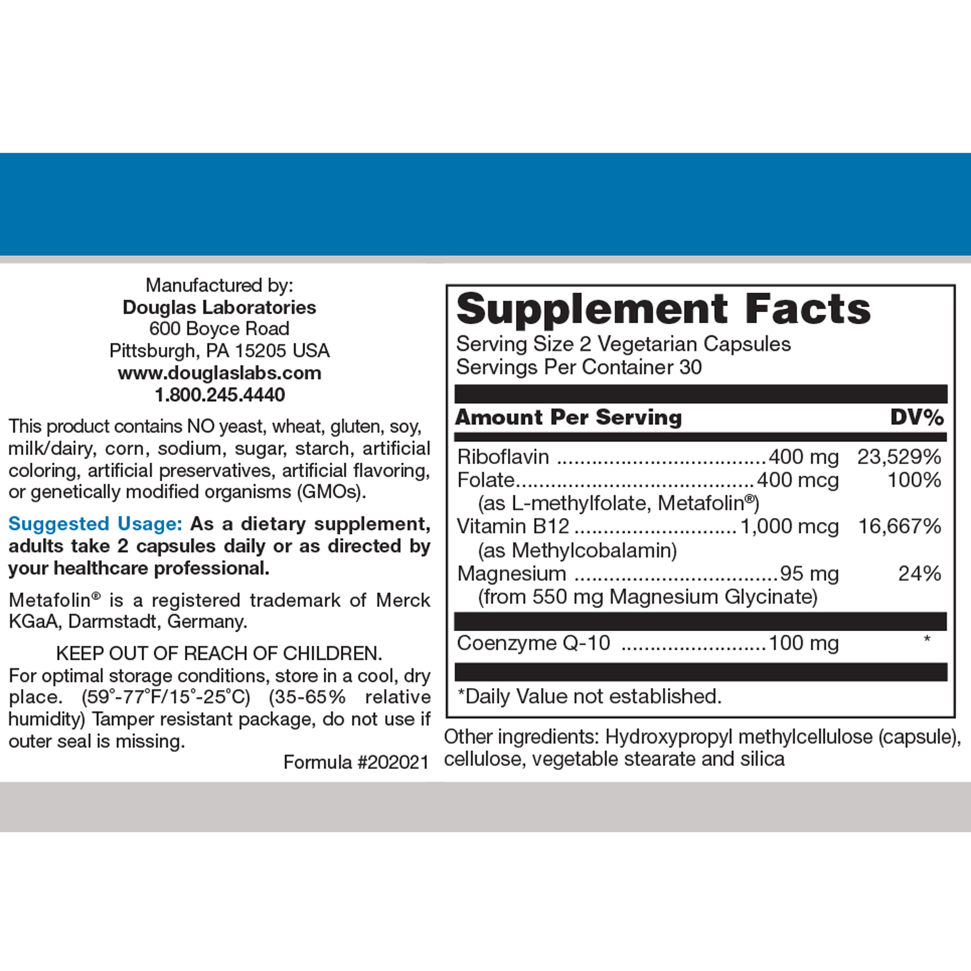 FUNCTIONS A common neurological sensitivity that can often be associated with discomfort, nausea, emesis, photophobia, and visual sensory changes, is linked to a number of genes, including those involved in regulating the vascular system. Of particular importance is the methylenetetrahydrofolate reductase (MTHFR) gene and the role it plays in neurological pathways. Gene expression is modulated through epigenetic mechanisms, which involve methionine. Another important factor is homocysteine because high plasma levels of homocysteine appear to have negative effects on the vasculature, impairing the functional abilities of endothelial and smooth muscle cells. It has been suggested that homocysteine (Hcy) and the 5-10-methylenetetrahydrofolate reductase (MTHFR) C677T variant are implicated in the development of brain hypersensitivity and reactivity. Genetic factors such as the MTHFR C677T polymorphism and other polymorphisms in folate-related genes are associated with high homocysteine levels. Studies suggest that patients with brain hyper-reactivity have higher homocysteine levels and complex epigenetic interaction among folate-related genes that may contribute to increasing this vascular sensitivity. The primary route by which homocysteine is re-methylated to methionine requires folate in the form of methyltetrahydrofolate as a methyl donor and vitamin B-12 (methylcobalamin) as a coenzyme. Methyltetrahydrofolate, or L-methylfolate, can be used directly by the body and cross the blood-brain barrier, without the need for folic acid conversion via the enzyme 5, 10-methylenetetrahydrofolate reductase (MTHFR). Therefore, supplementing with the methylated B vitamins L-methylfolate (5-MTHF) and methylcobalamin may contribute to healthy homocysteine levels and proper methylation support by influencing the methioninehomocysteine cycle.† Magnesium plays an important role in mitochondrial energy production, cell-to-cell communication, skeletal and smooth muscle relaxation, and neurotransmitter production and regulation. Significantly lowered serum, intracellular, cerebrospinal fluid and salivary magnesium have been seen in individuals with increased cerebral hypersensitivity and reactivity. Magnesium deficiency can lead to many physiological changes, including cerebral artery spasm and increased release of stimulating mediators. A double blind, randomized, placebocontrolled trial found that a high dose of oral magnesium consumed daily for 12 weeks, significantly supported head comfort and lessened the frequency and duration of stimuli to the brain. Therefore, magnesium supplementation may support cerebral vessel function and relaxation.† The magnesium glycinate chelate offered in Neuro Comfort is a well-tolerated form of magnesium that is bioavailable to the body. When brain energy metabolism is found to be suboptimal, the brain becomes hyper-responsive to many stimuli. This metabolic abnormality of mitochondrial oxidative metabolism has led to the research and suggestion of riboflavin and coenzyme Q-10 as supporting nutrients. Coenzyme Q-10 (ubiquinone) is an important rate-limiting cofactor in the mitochondrial electron transport chain. Since cellular activities are dependent upon energy, Co Q-10 is crucial for the efficient functioning of nearly every cell. Riboflavin is an essential coenzyme in energy production. It is a component of the coenzymes FAD and FMN, which are intermediates in many redox reactions. Based on human clinical trials, it