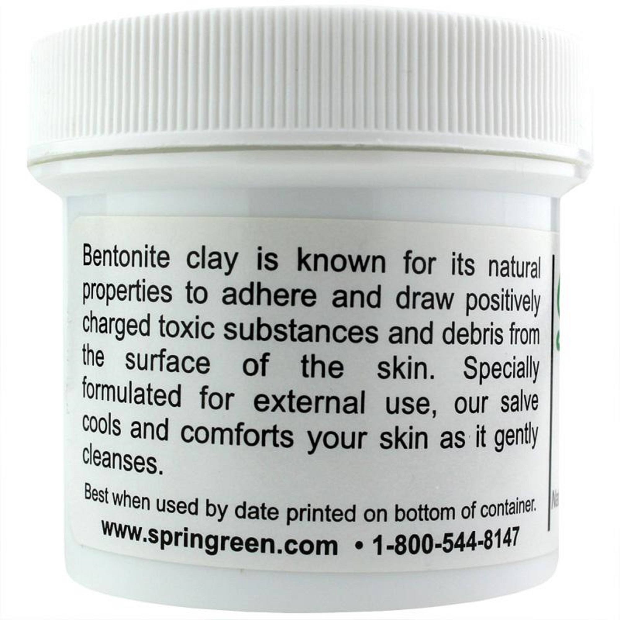 Oil Base Salve from Springreen supports detoxification and may offer temporary relief from minor skin abrasions. This salve is made with a base of bentonite clay, which is composed of aged volcanic ash, and was used for many years in poultices and skin care recipes.