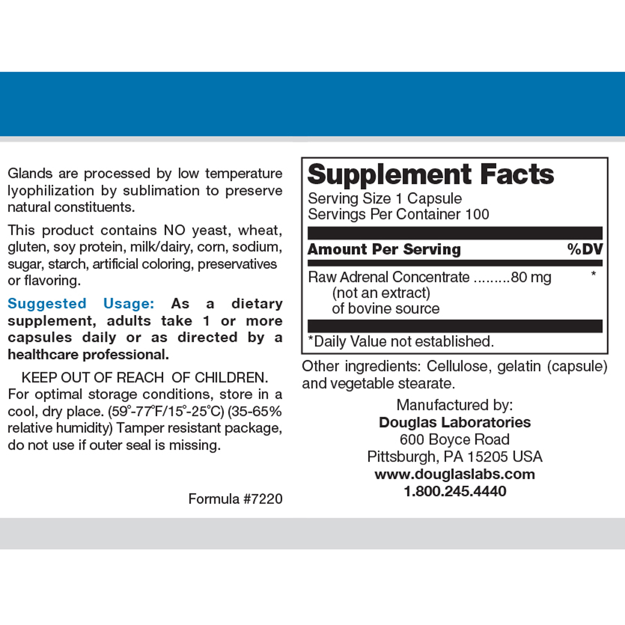 Ora Adren 80, from Douglas Laboratories, provides 80 mg of raw adrenal concentrate per capsule.