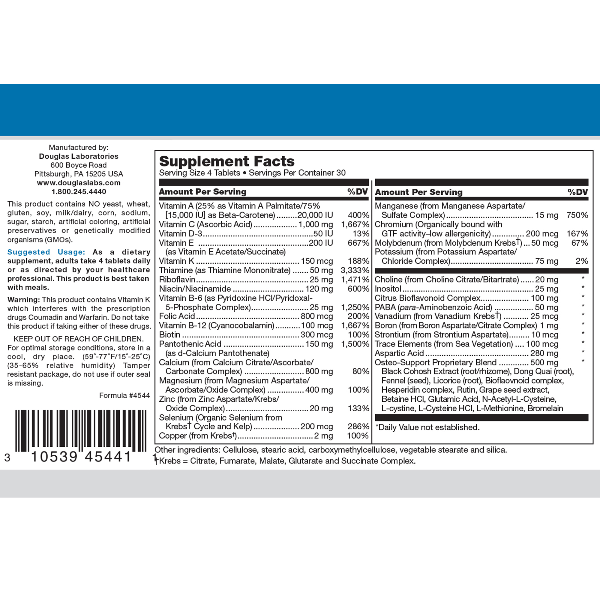 Osteo-Support Formula, provided by Douglas Laboratories, is a synergistic and comprehensive combination of vitamins, minerals, enzymes, herbals, and other nutrients, carefully formulated and specifically designed to maintain healthy bone structure and function.