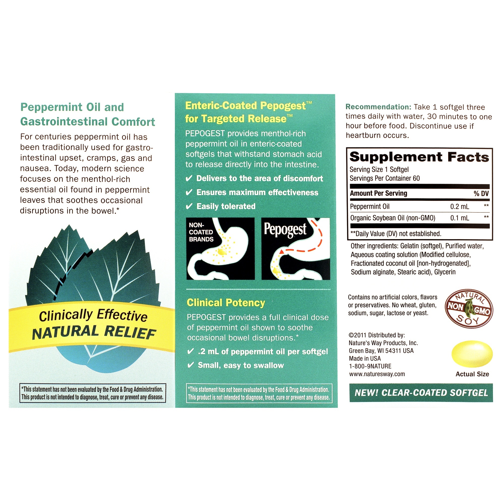 Pepogest provides natural gastrointestinal comfort. The essential oil found in peppermint leaves soothes the occasional disruptions in the bowel often caused by nervousness, overeating and/or changes in the diet.