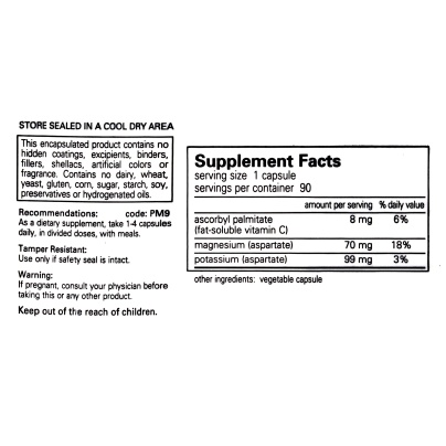 Potassium and magnesium are essential for healthy nerve impulse function, muscle contraction, cardiovascular function, acid/alkaline balance and carbohydrate and nutrient metabolism. Magnesium also plays an important role in facilitating potassium utilization, helping to provide optimal support from this important combination.