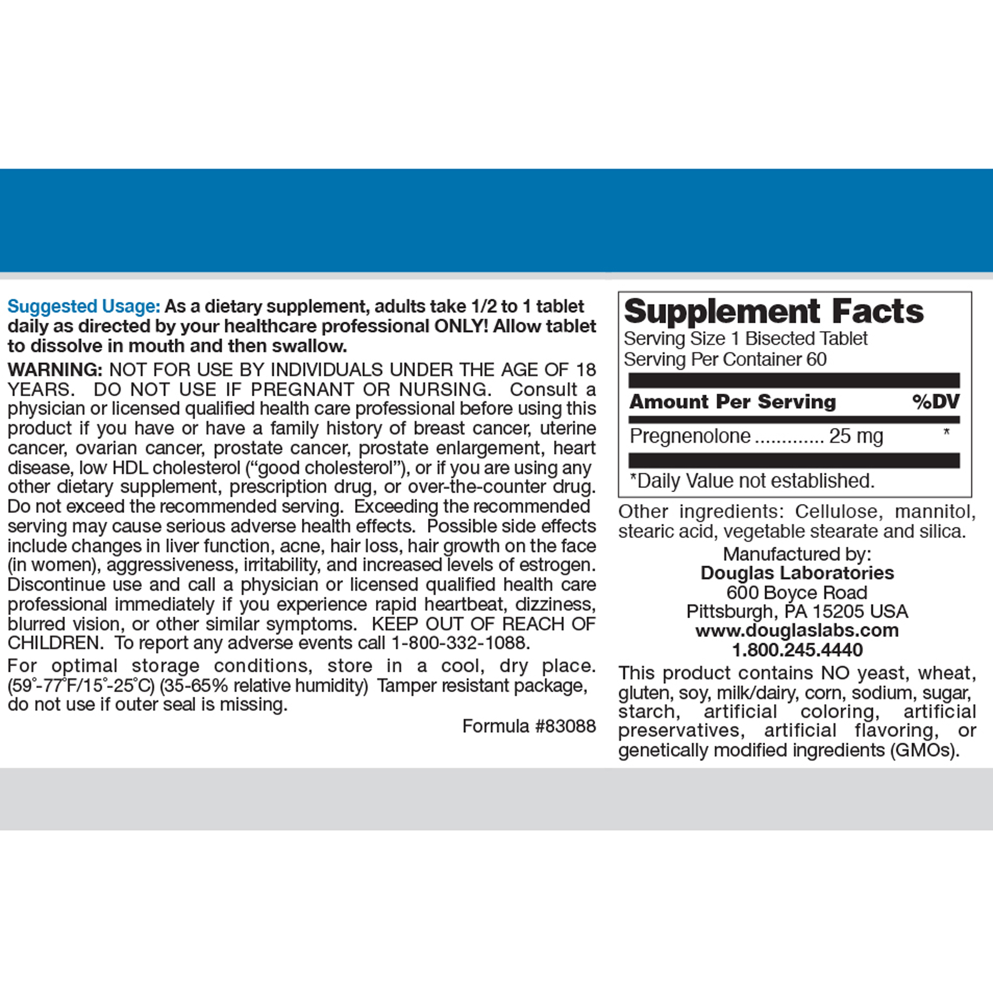 Pregnenolone 25 mg contains highest purity pregnenolone and is produced under strict Good Manufacturing Practices (GMP) standards. Tablets can be dissolved in mouth and swallowed or swallowed whole.