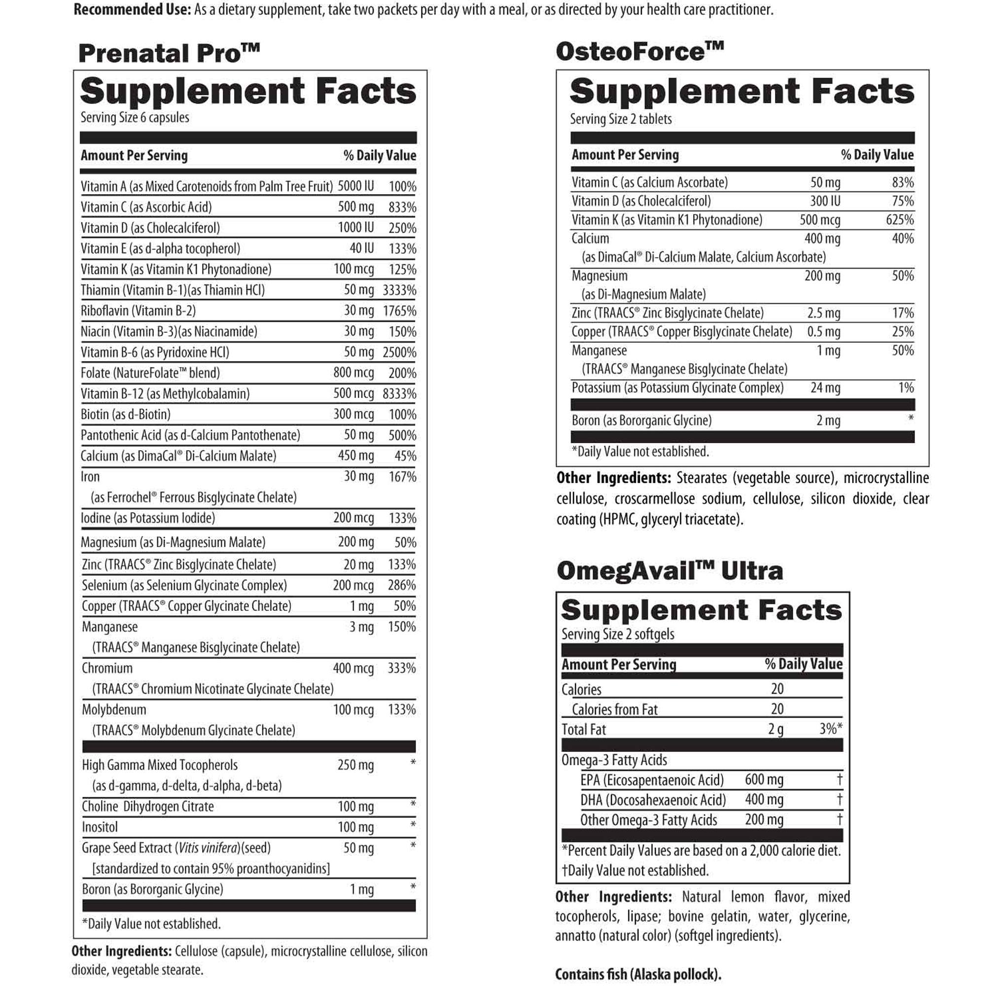 We recommend starting these packets prior to trying to get pregnant to help ensure optimized nutrient levels before conception. Two packets should be consumed daily throughout the entire pregnancy and post-pregnancy as well, especially if lactating, in order to nourish the mother and to deliver needed nutrition to the baby as well.