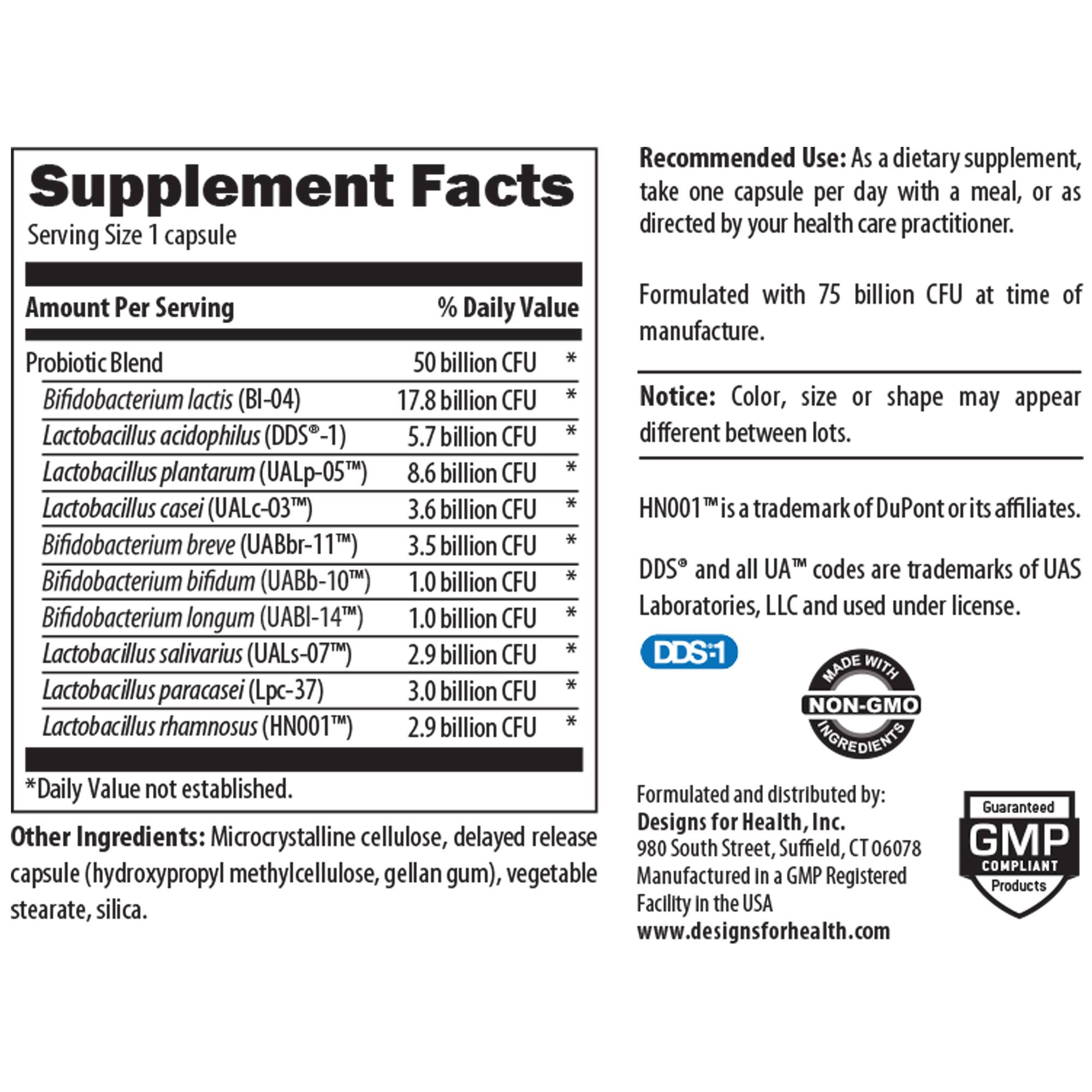 Other Ingredients: Microcrystalline cellulose, delayed release capsule (hydroxypropyl methylcellulose, gellan gum), vegetable stearate, silica.